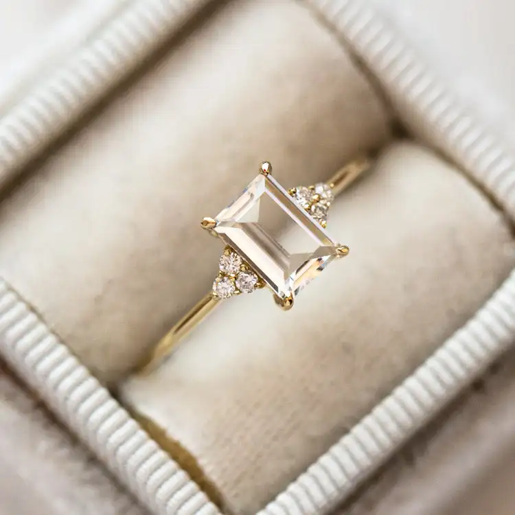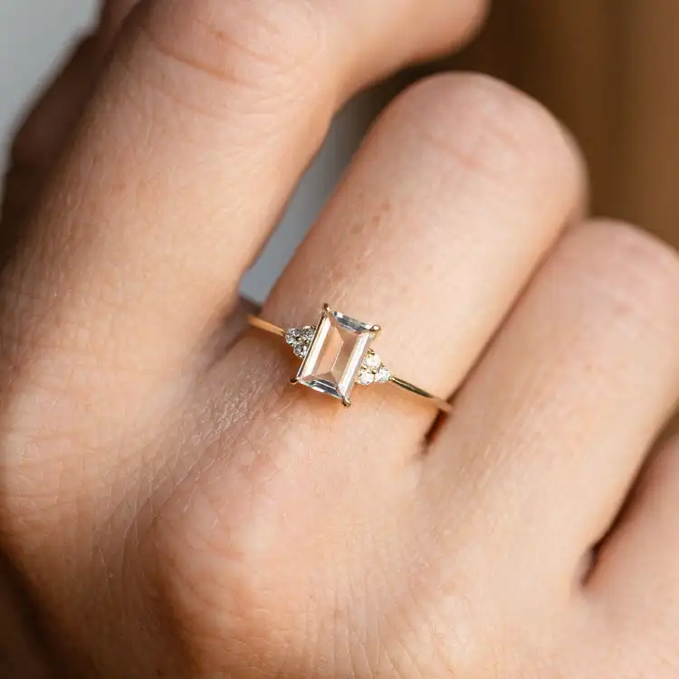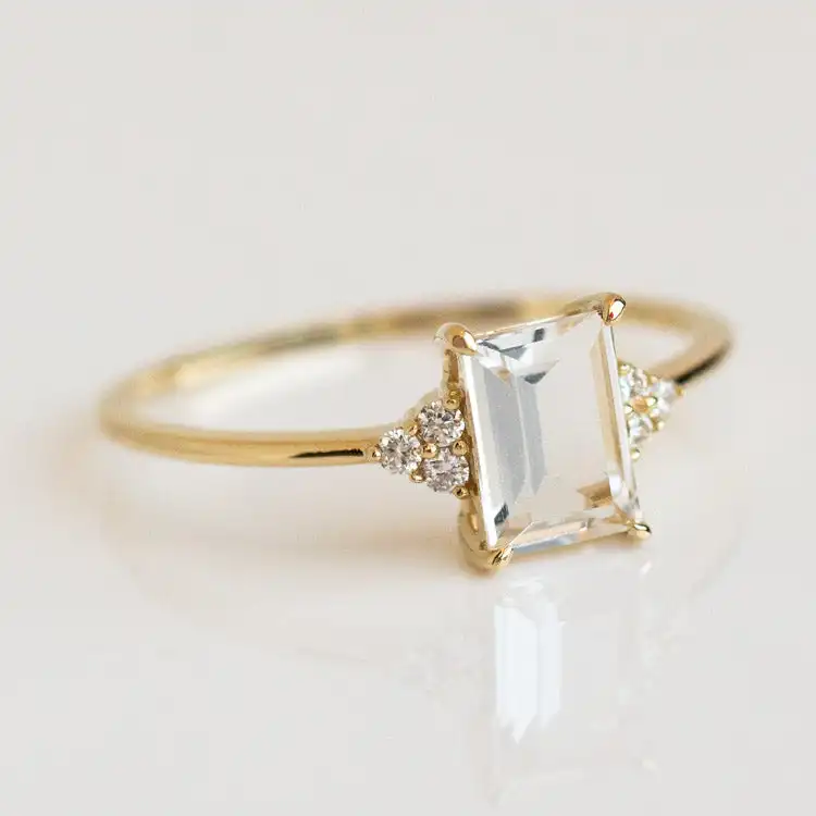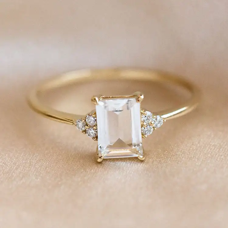 2026 Wholesale American Style Fashion Cz Engagement Topaz Jewelry Ring Solid Gold White Topaz Ring 925 Sterling Silver for Lady