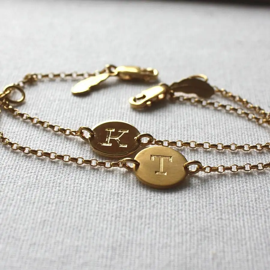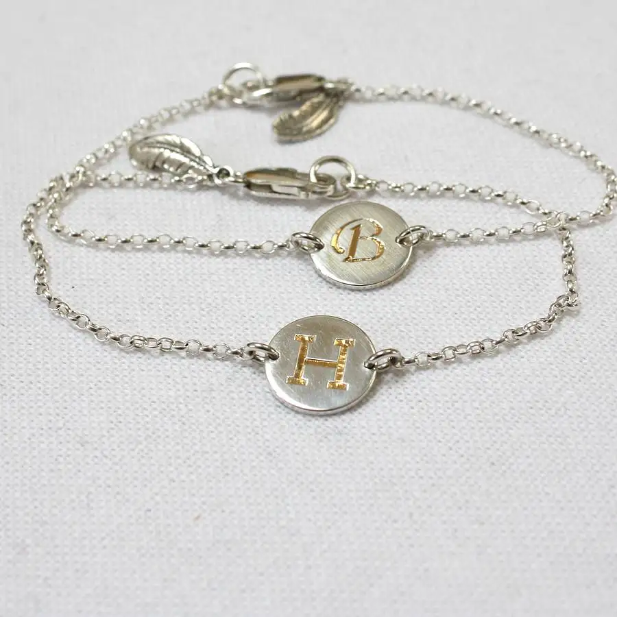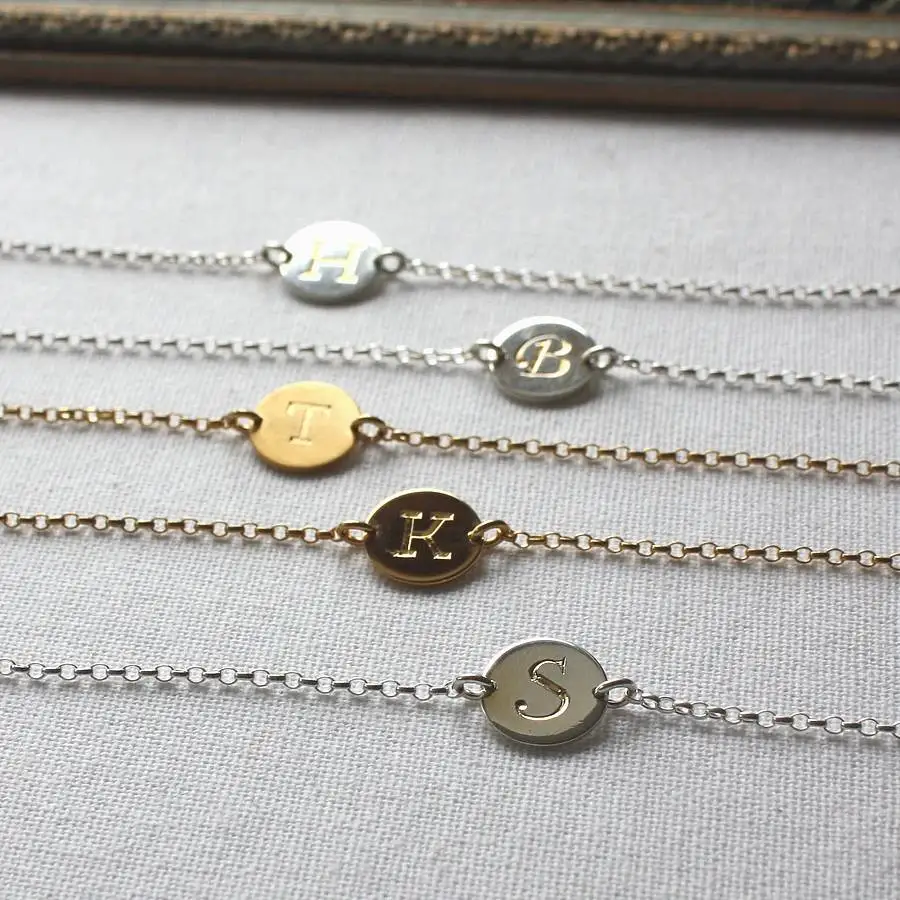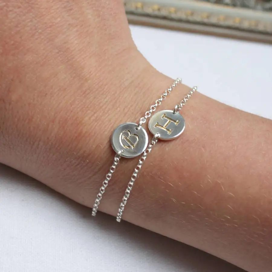 2026 Most Popular 925 Sterling Silver Bracelet Charms Jewelry Initials Letters Personalised Hand Engraved Initial Bracelet