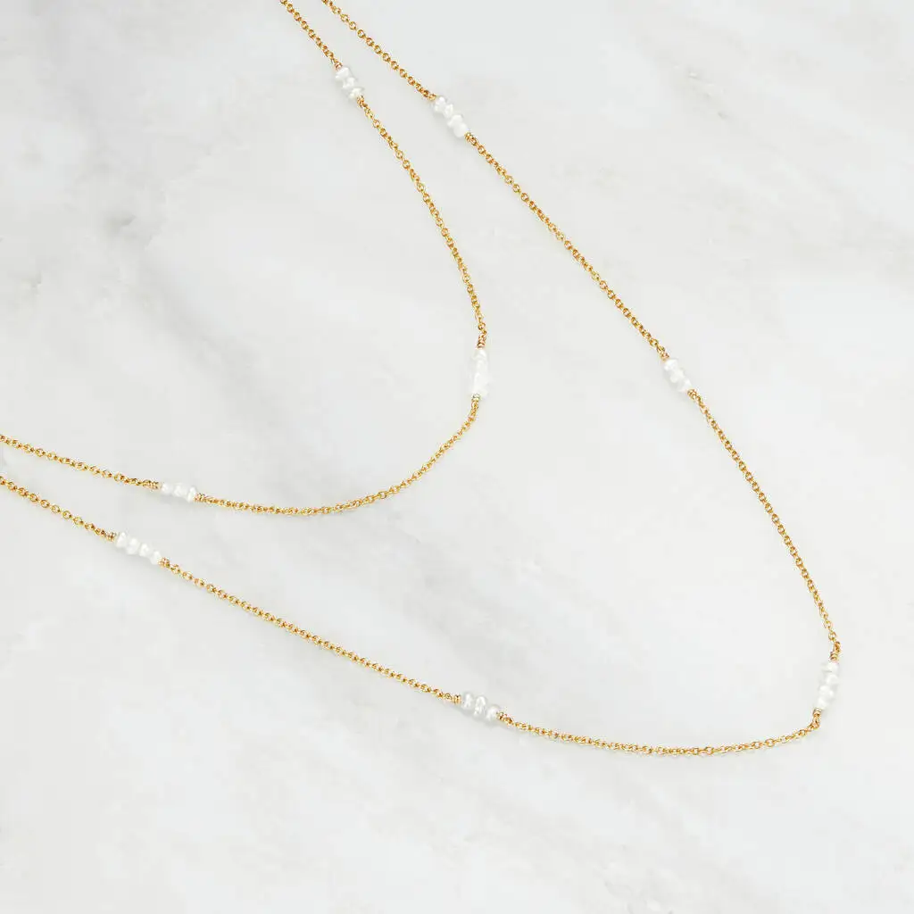 Mei Long Jewelry Factory Wholesale 925 Silver Women Two Layer Pearl Necklaces Gold Silver Rose Multi Layered Mini Pearl Necklace