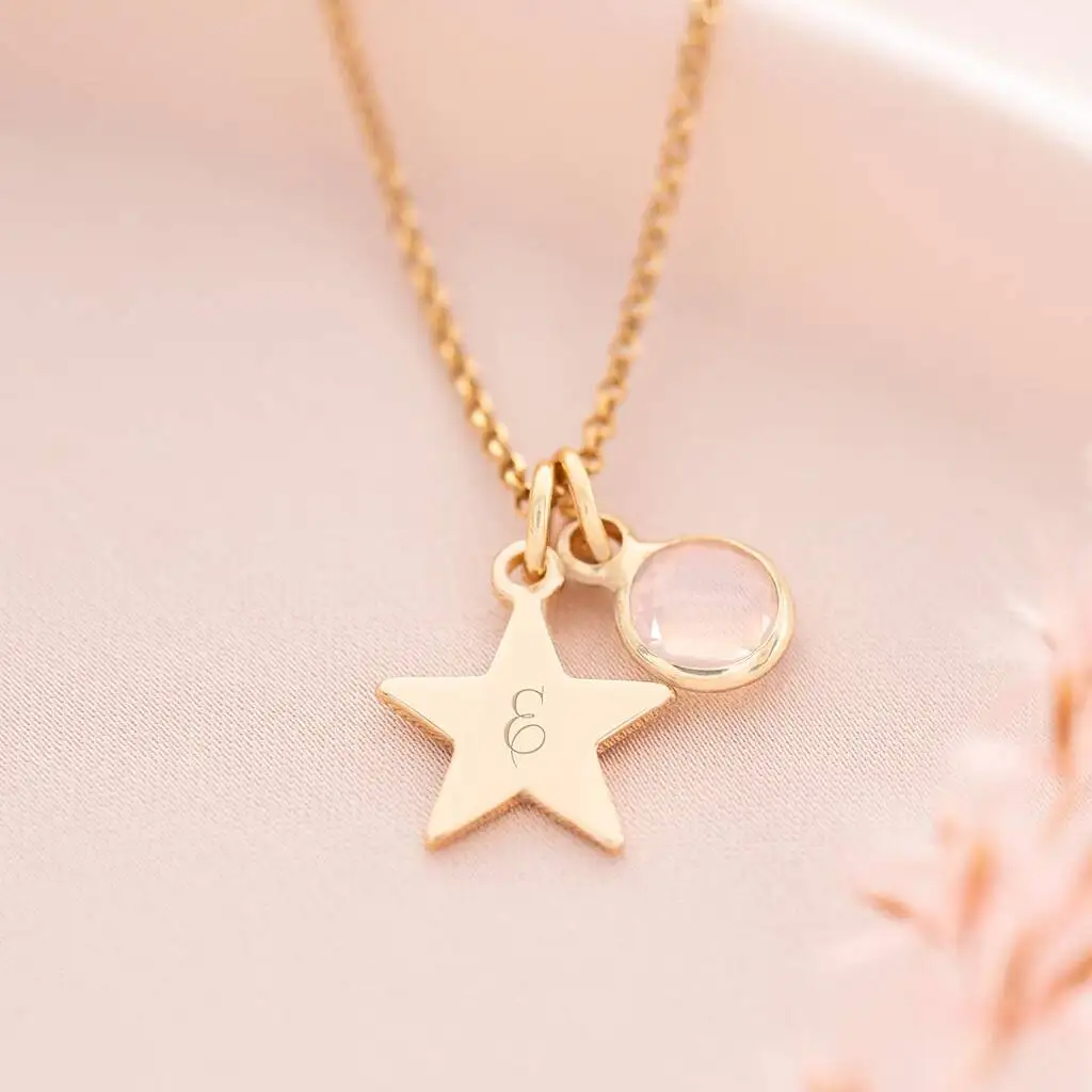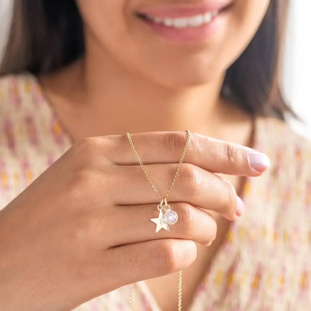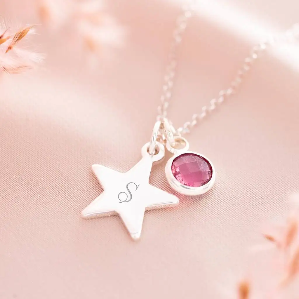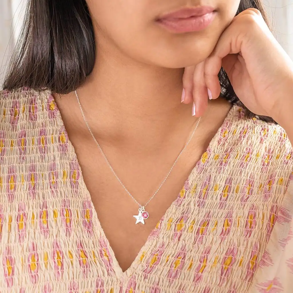 High Quality Wholesale 925 Sterling Silver Personalised Birthstone Crystal Star Sign Necklace 5 Points Star Necklace for Women