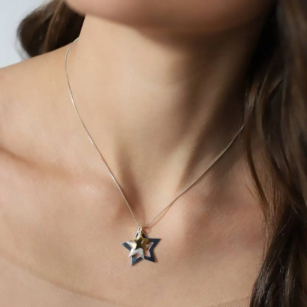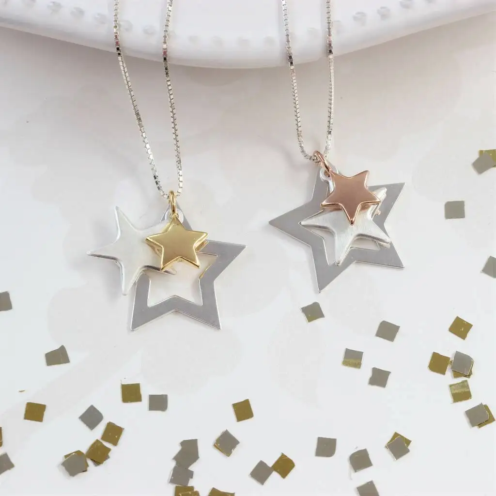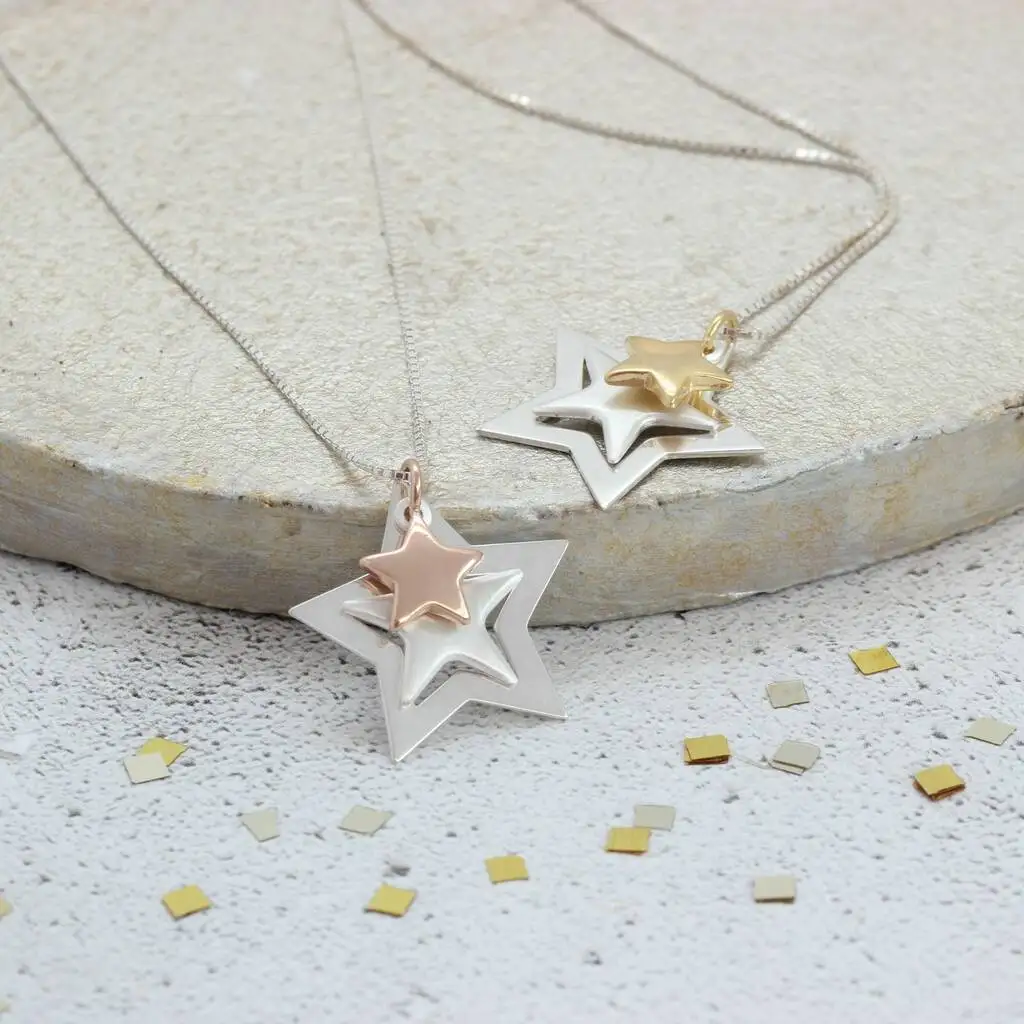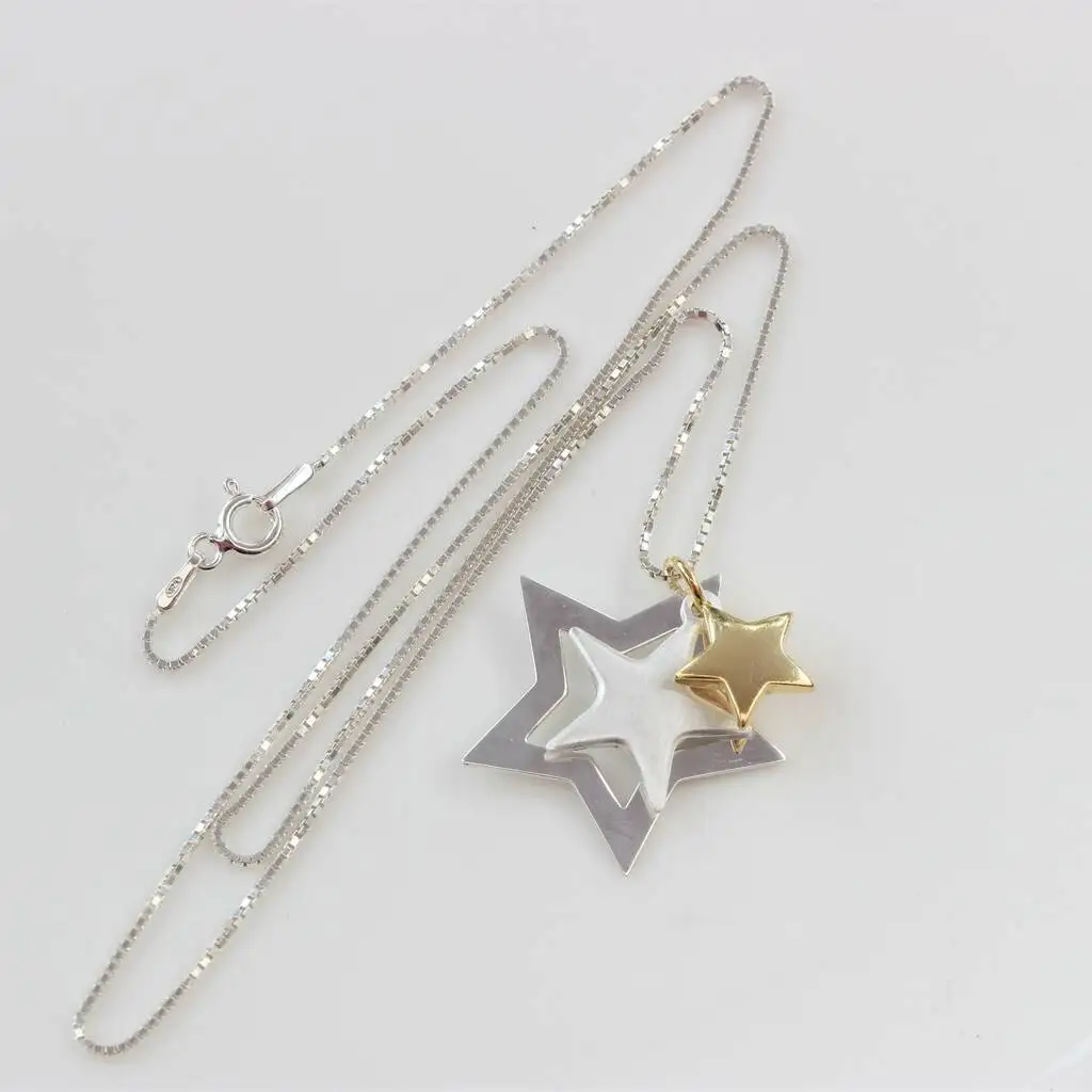 MeiLong Jewelry Factory Wholesale Slider Charm Star 925 Sterling Necklace Twinkle Triple Silver Star Minimalist Pendant Necklace