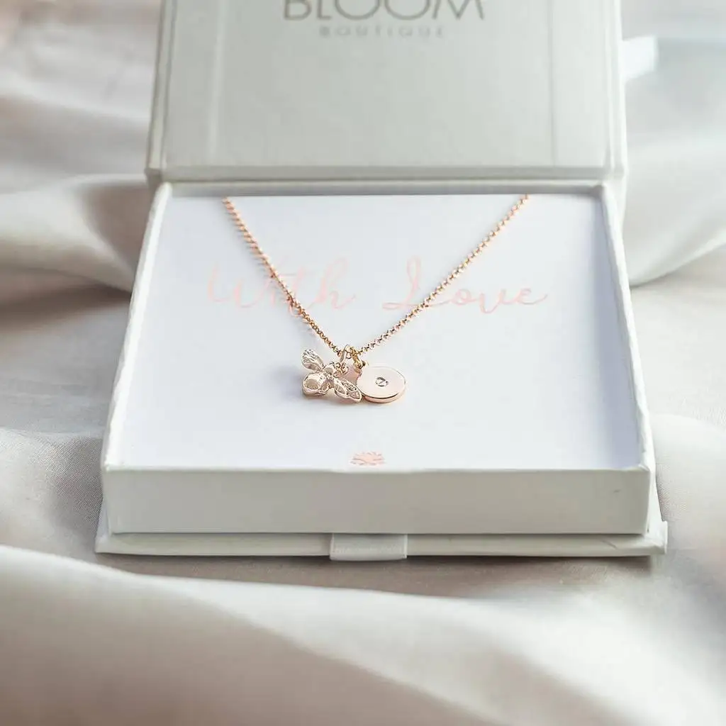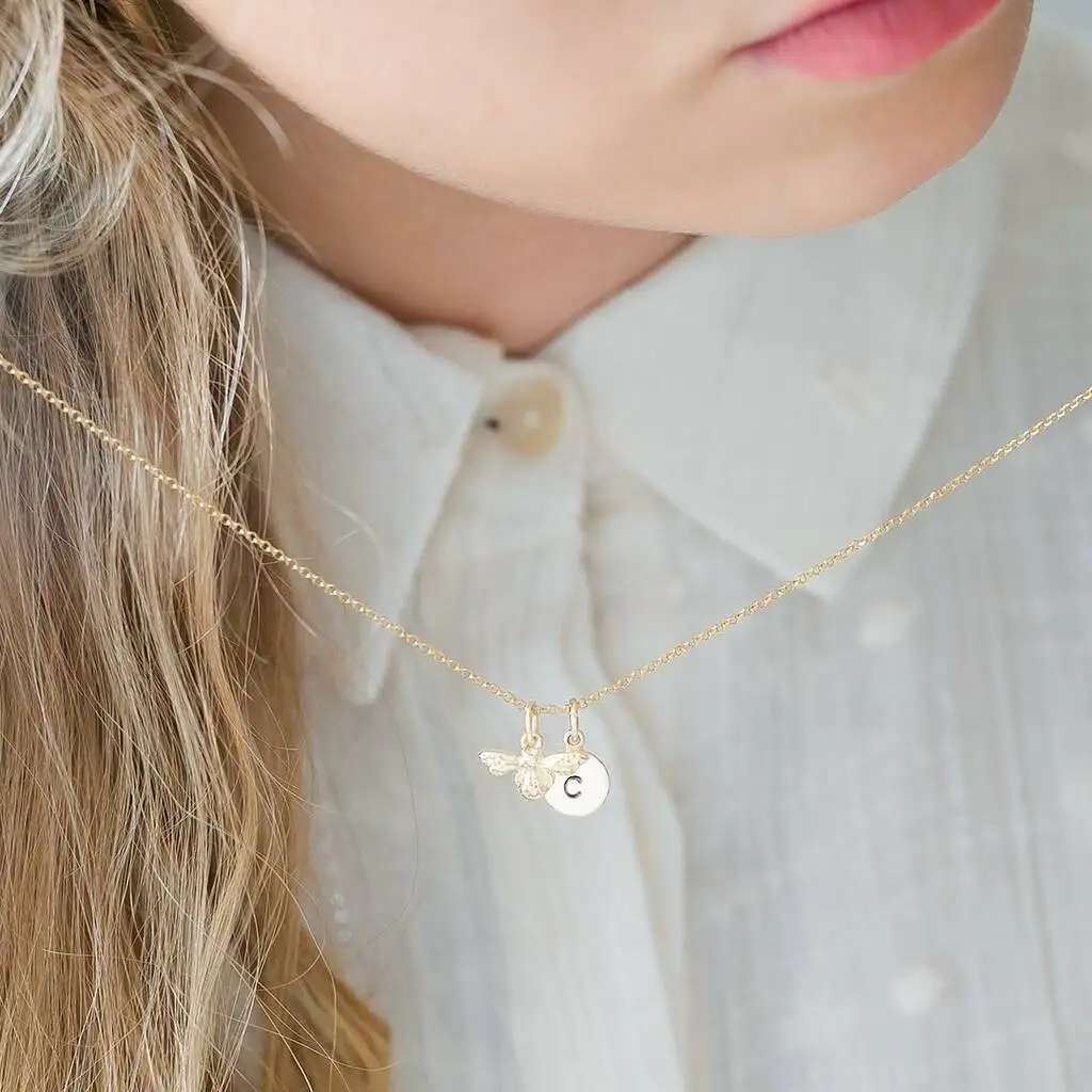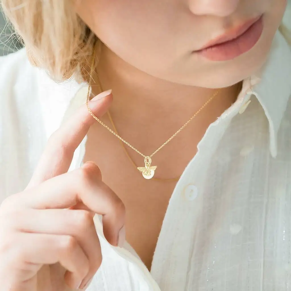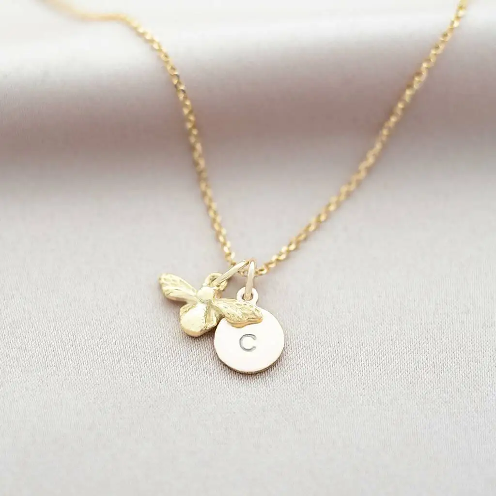 American Style Personalised Custom 18k Gold Plated Vermeil Bee Necklace 925 Sterling Silver Honey Bee Necklace for Women