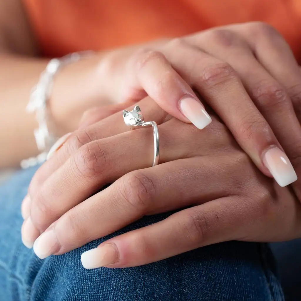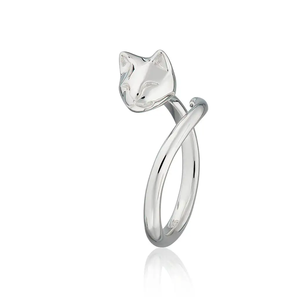 Jewelry Supplier Wholesale American Style Cat Rings 925 Sterling Silver Open Adjustable Cat Ring for Girl Women Gift