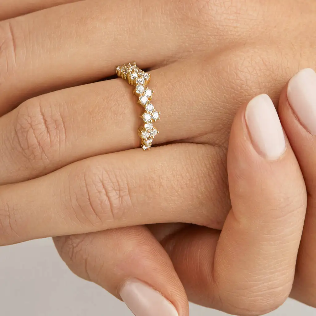 Wholesale American Style Moissanite Diamond Cluster Rings Gold 925 Sterling Silver Diamond Cluster Ring Trade for Women