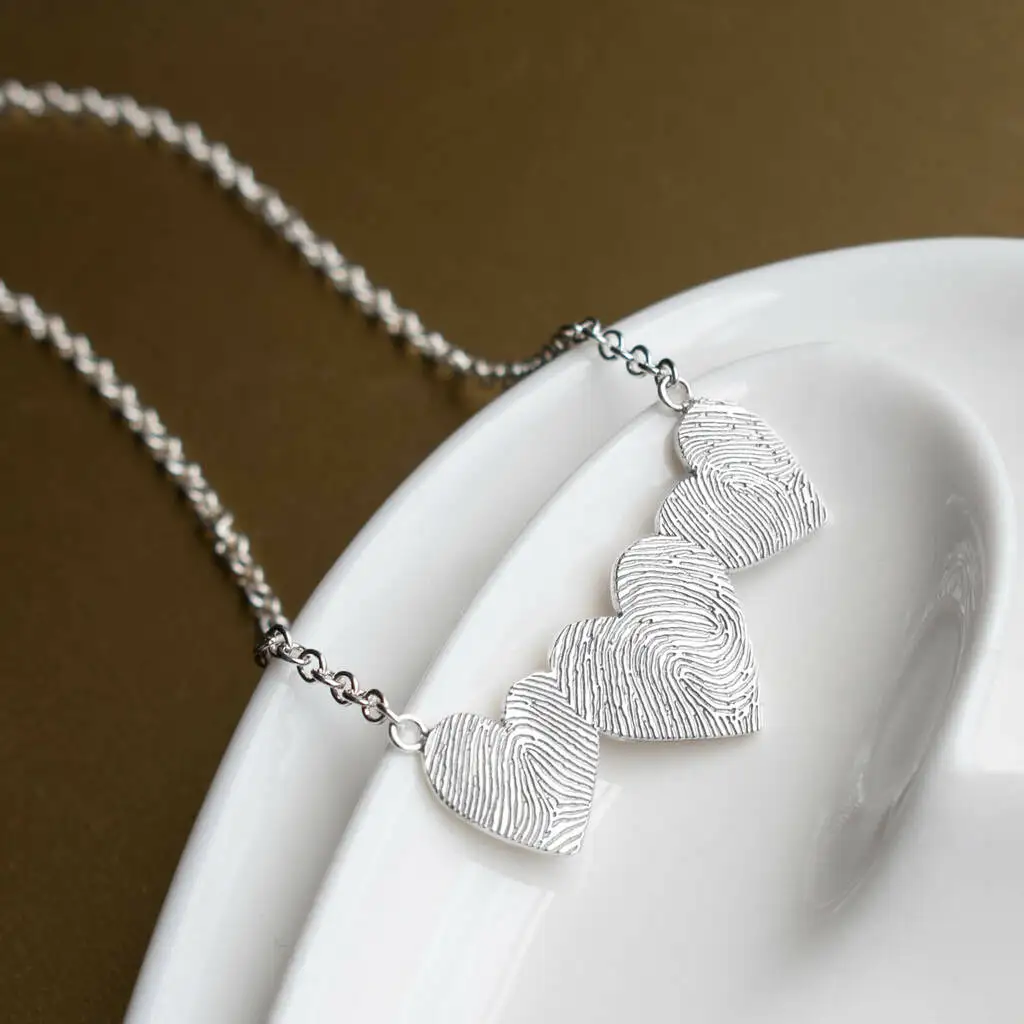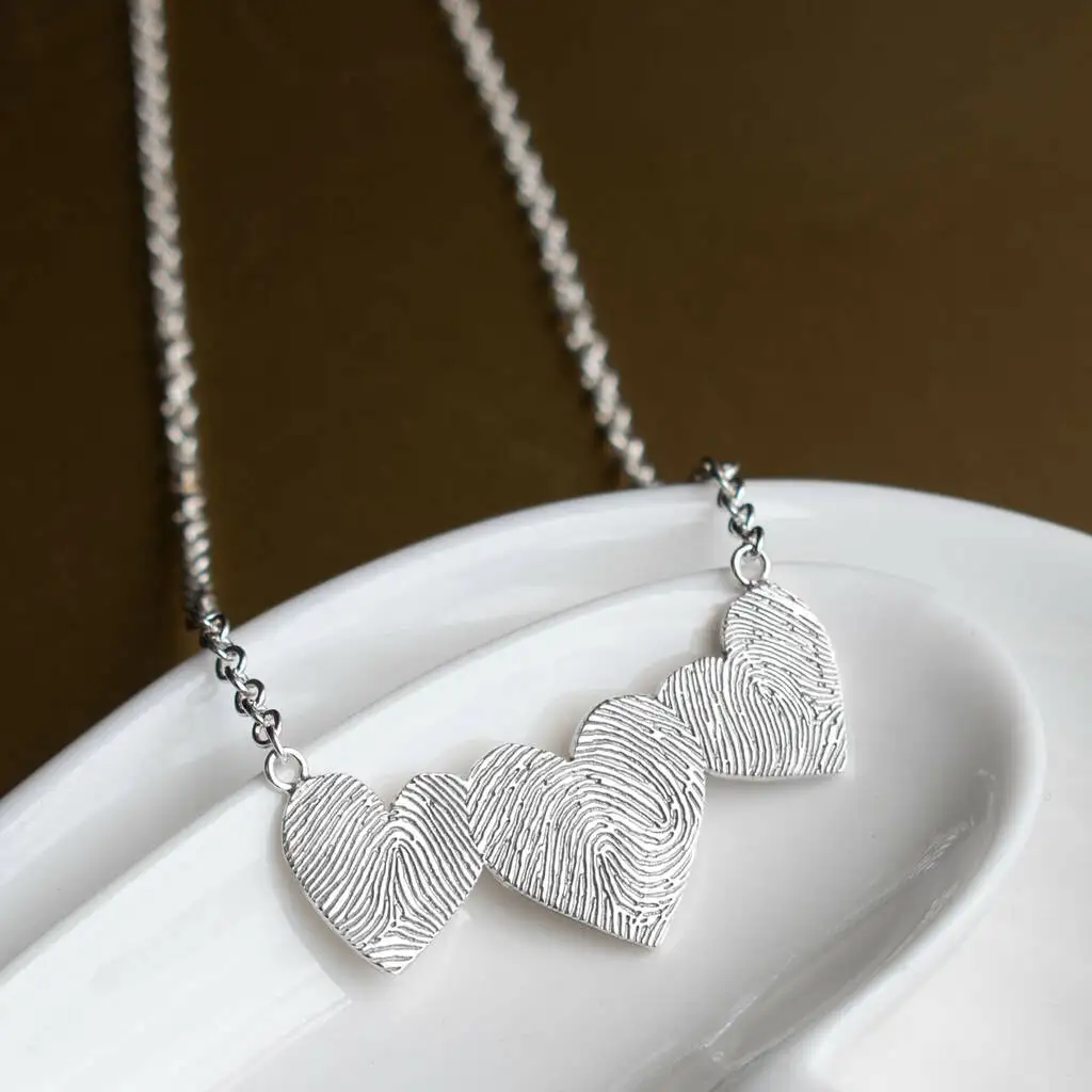 Mei Long Jewelry Factory's 925 Sterling Silver Triple Heart Necklace Rhodium Plated and Personalised with Fingerprint
