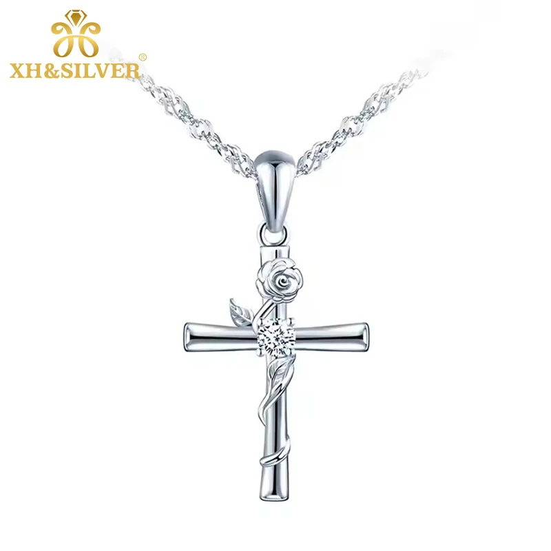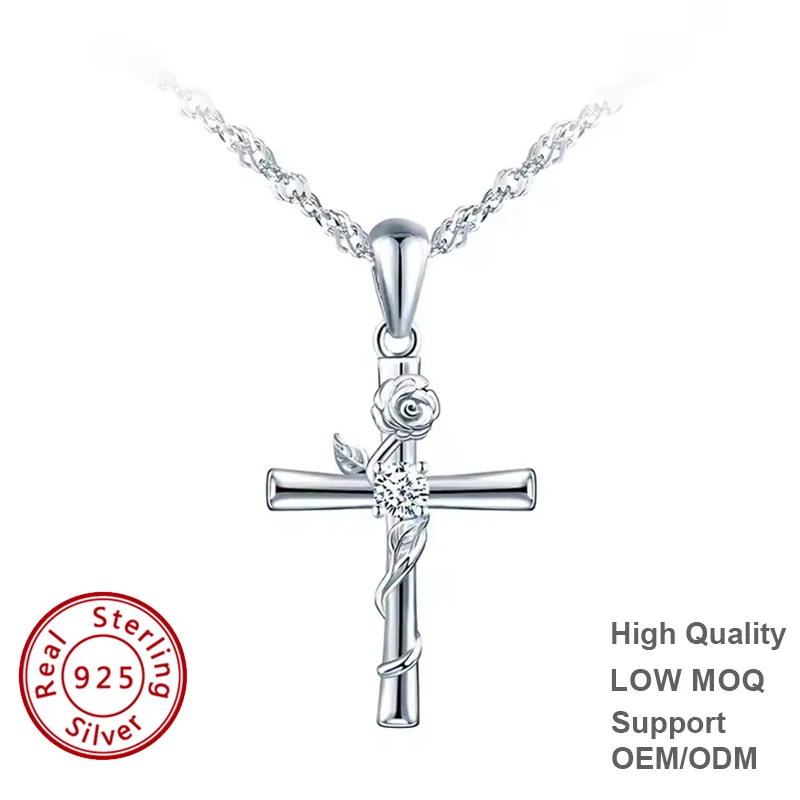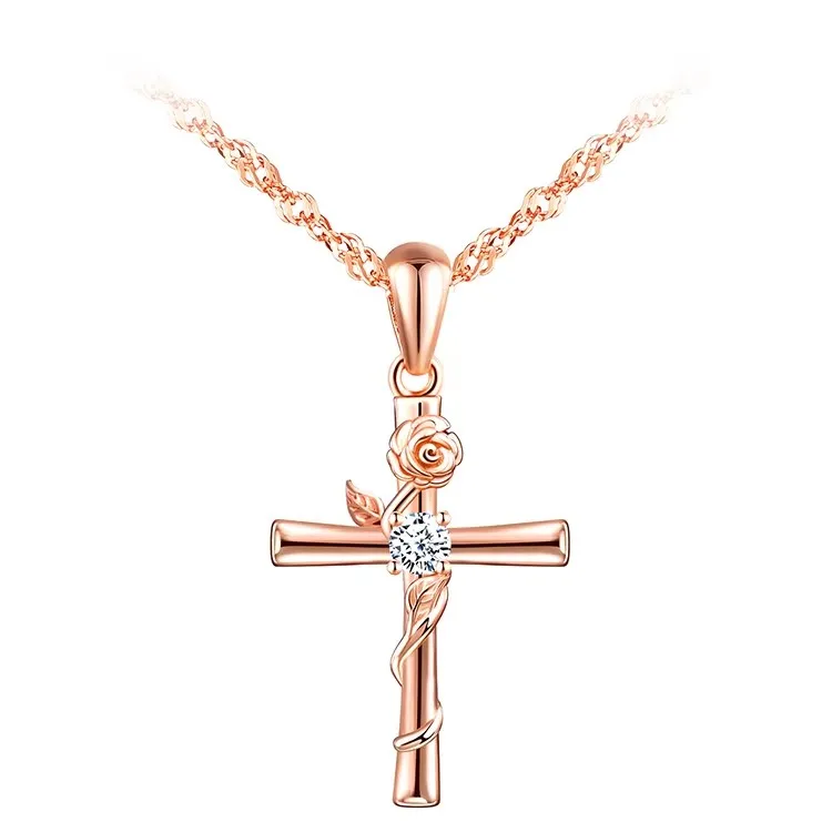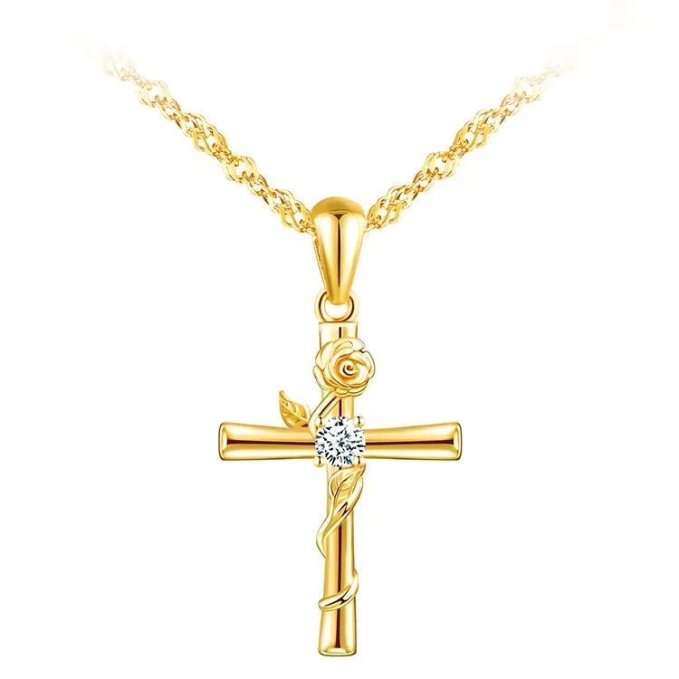 Wholesale Christian Jewelry with Rhodium and Gold Plated Zeircon Cross Pendant for Party Occasions