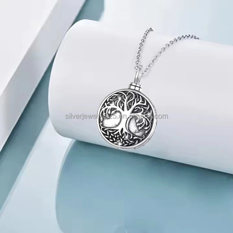 Jewelry Factory Wholesale Stylish 925 Sterling Silver Tree Life Pendant Necklace for Women Trendy Fine Pendants Charms Ashes Urn