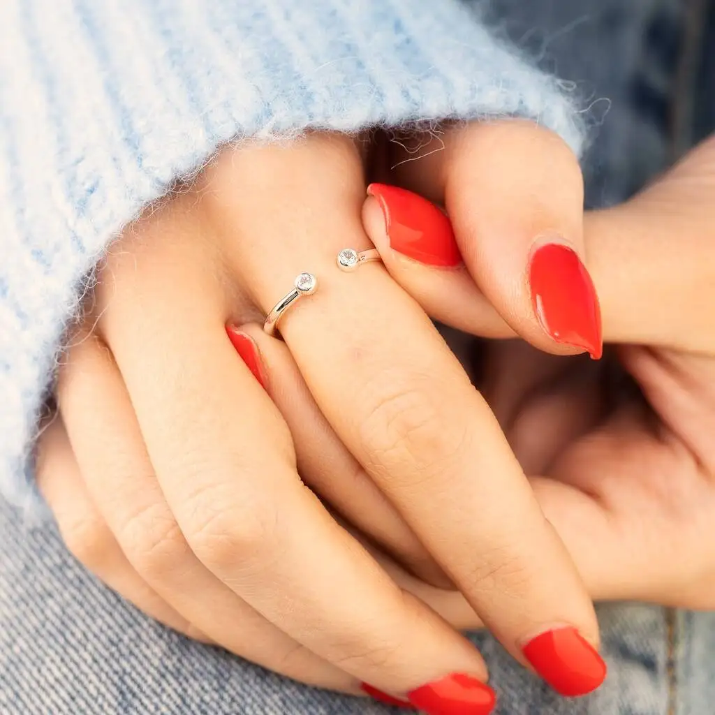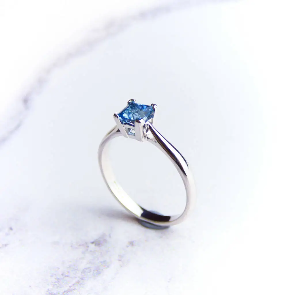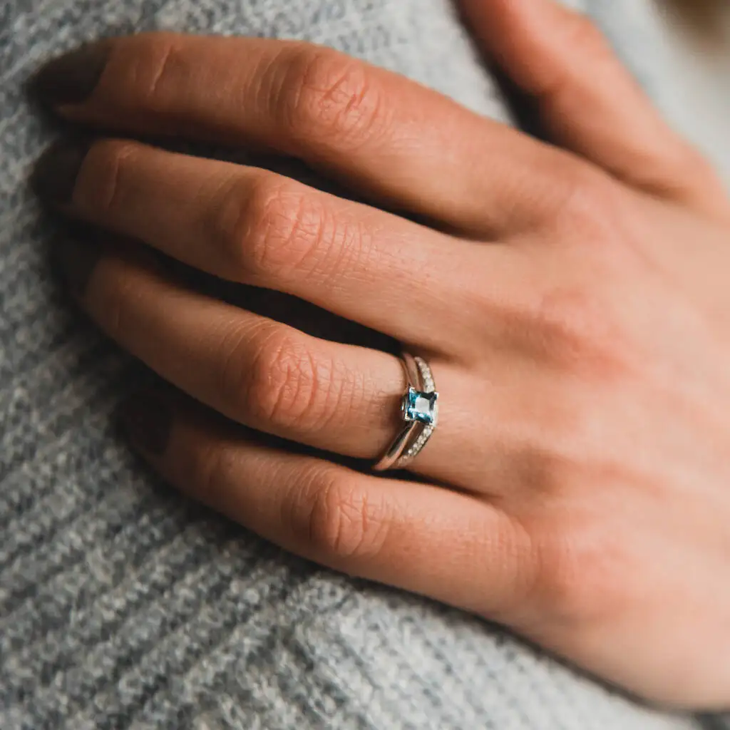 Wholesale Open Style Aquamarine Moissanite Silver Ring for Women March Birthstone Trendy Style Gift