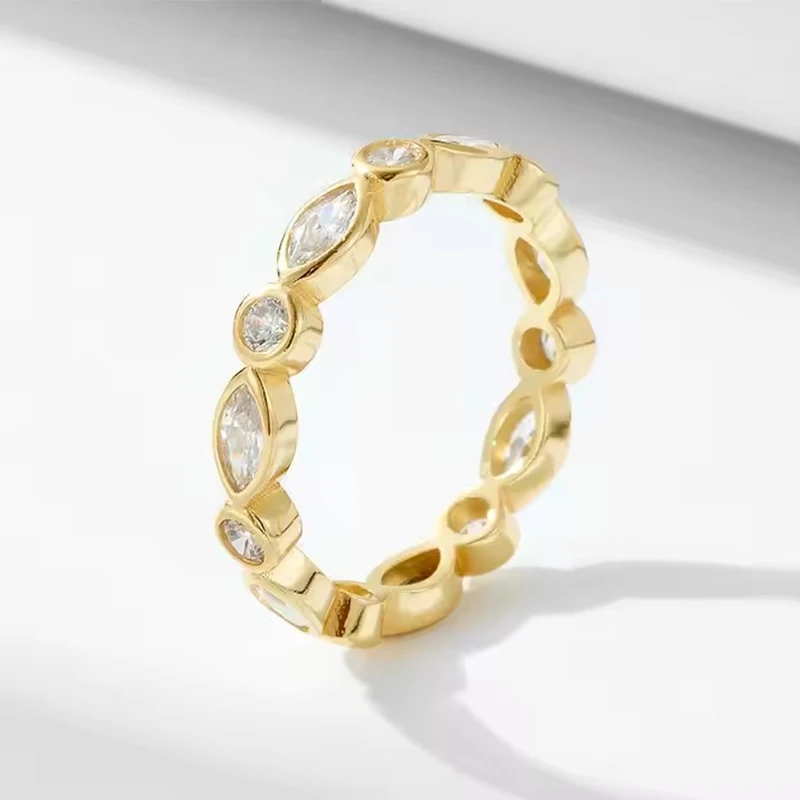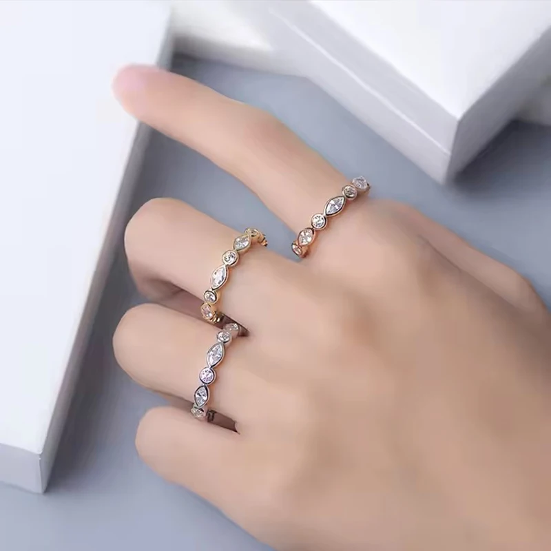 Custom 925 Sterling Silver Eye Shape Diamond Ring Trendy Fine Jewelry for Women Rhodium Plated Wedding Engagement Rings for