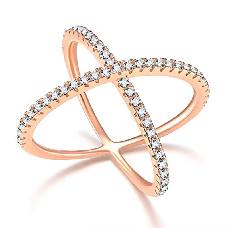 Wholesale 925 Sterling Silver Eternity Wedding Band Ring Rose Gold Plated Cross 3A Cubic Zirconia for Party Jewelry for Women
