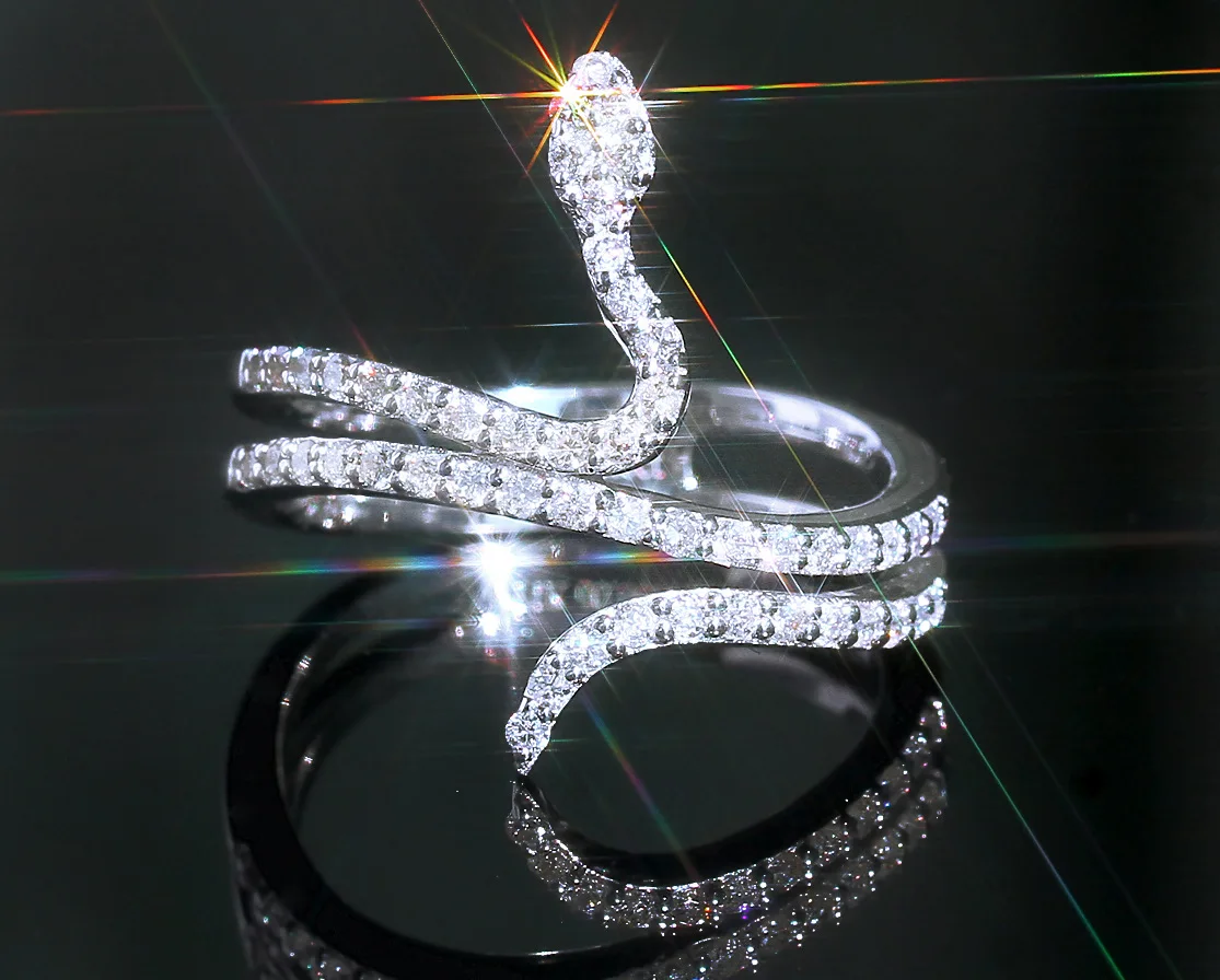 Xuan Huang Classic Snake Rings with Silver Animal Head Rhodium Plated Wholesale per Gram for Weddings Parties Anniversaries