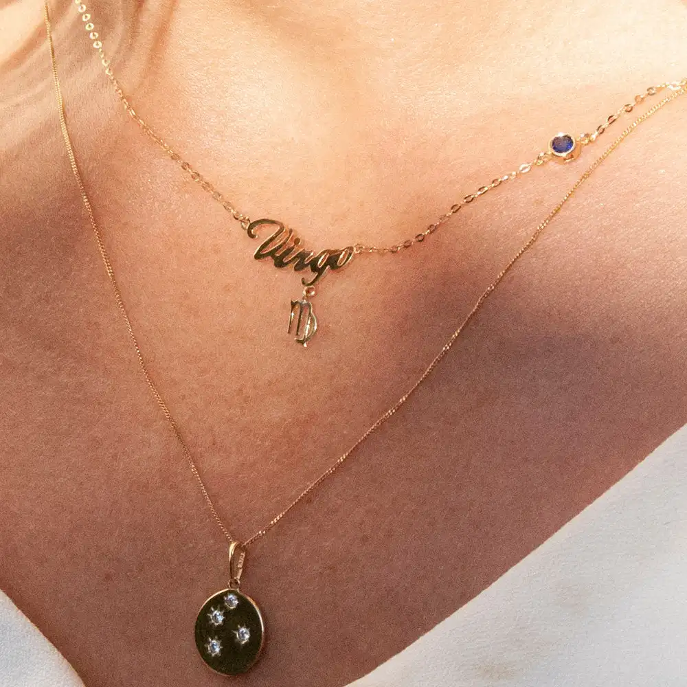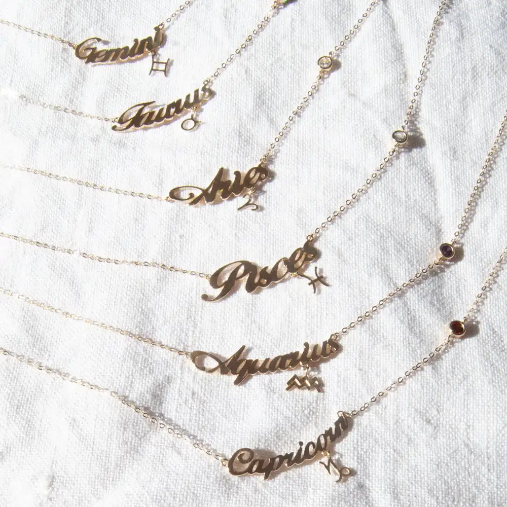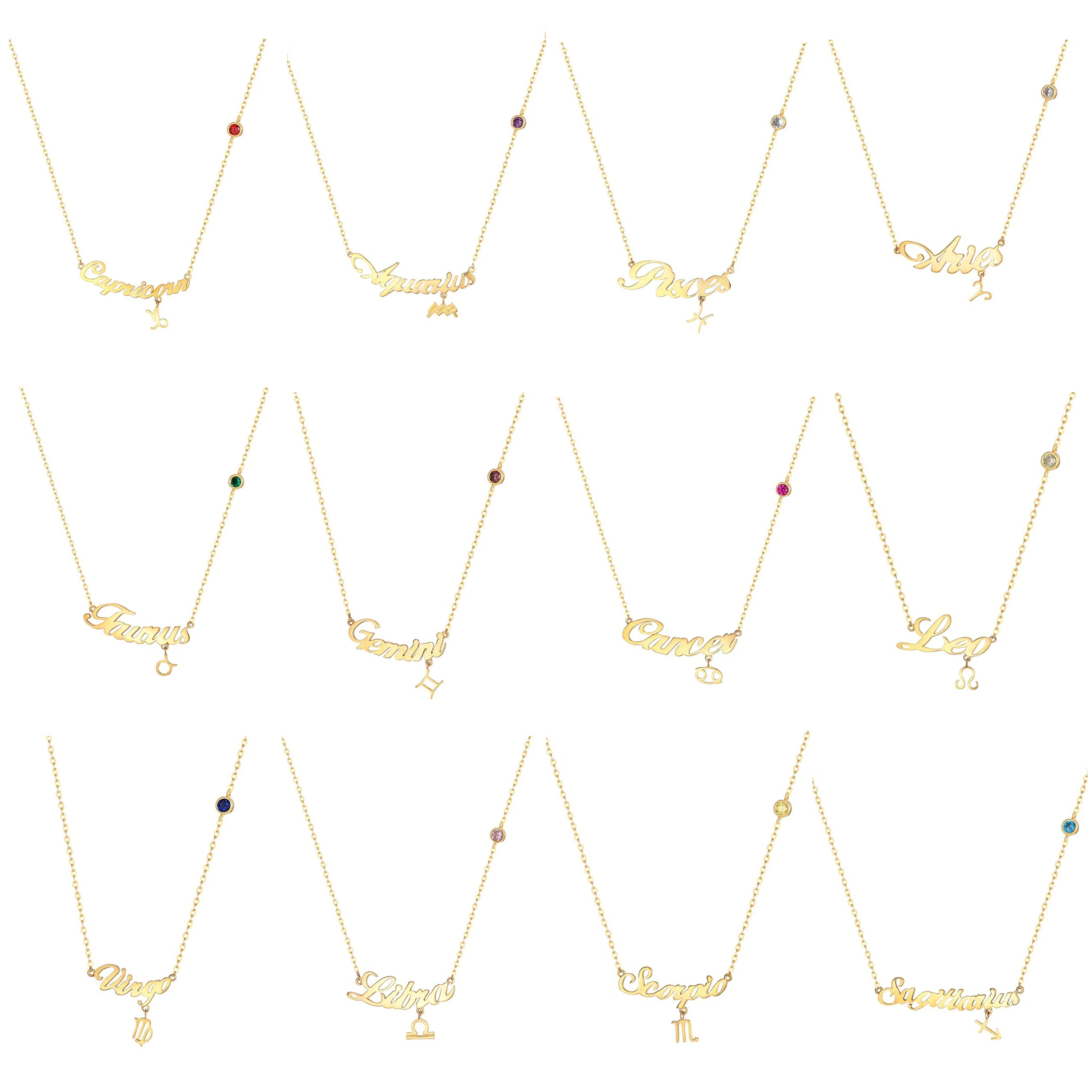 Bezel Cubic Zirconia Zircon Birthstone Zodiac Star Sign Necklace 925 Sterling Silver Zodiac Pendant Necklace With Star Signs