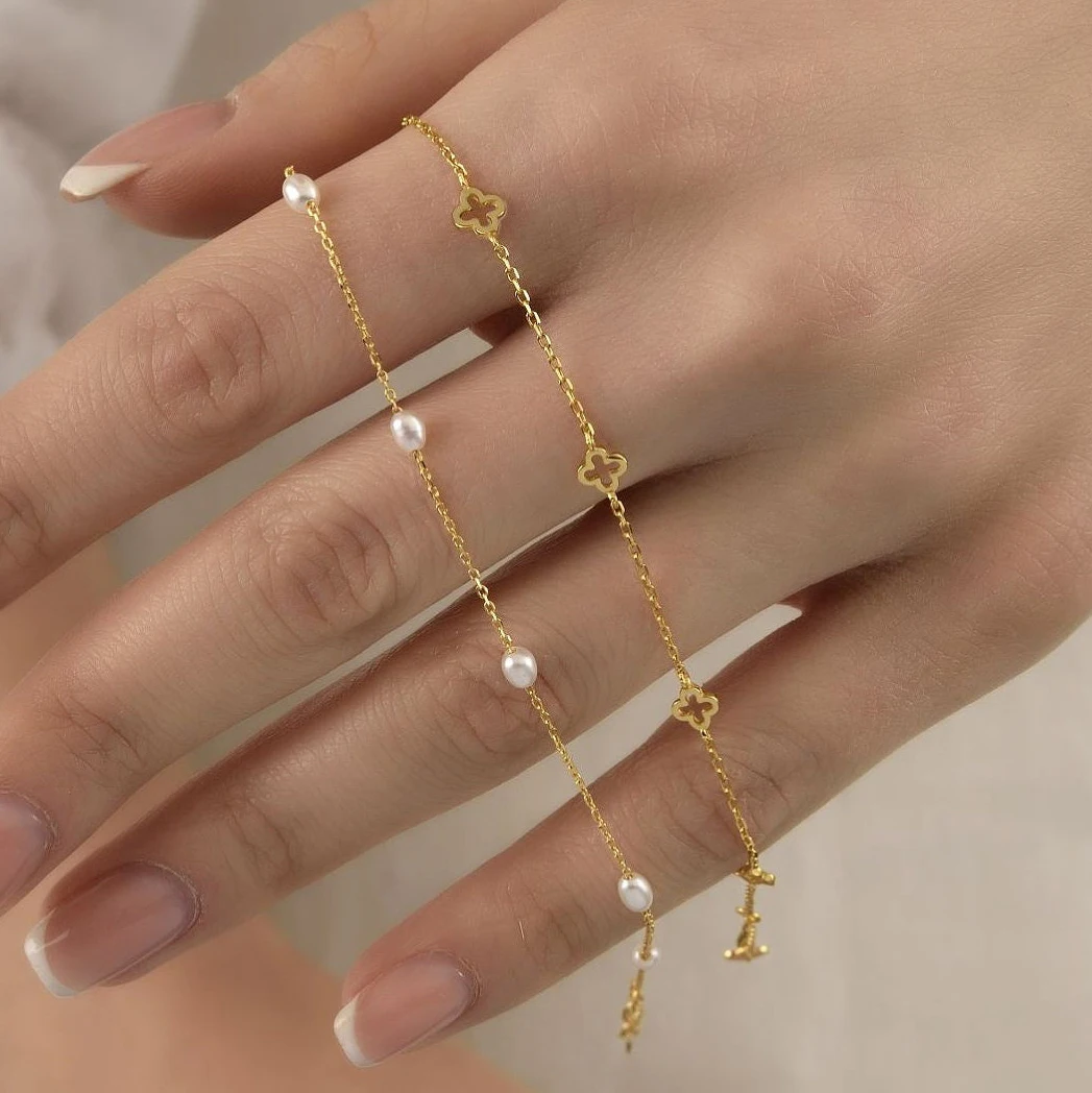 Wholesale Super Delicate Minimalist Sterling Silver 4 Leaf Clover Bracelet Gold Plated with Zircon Stone for Party or Gift