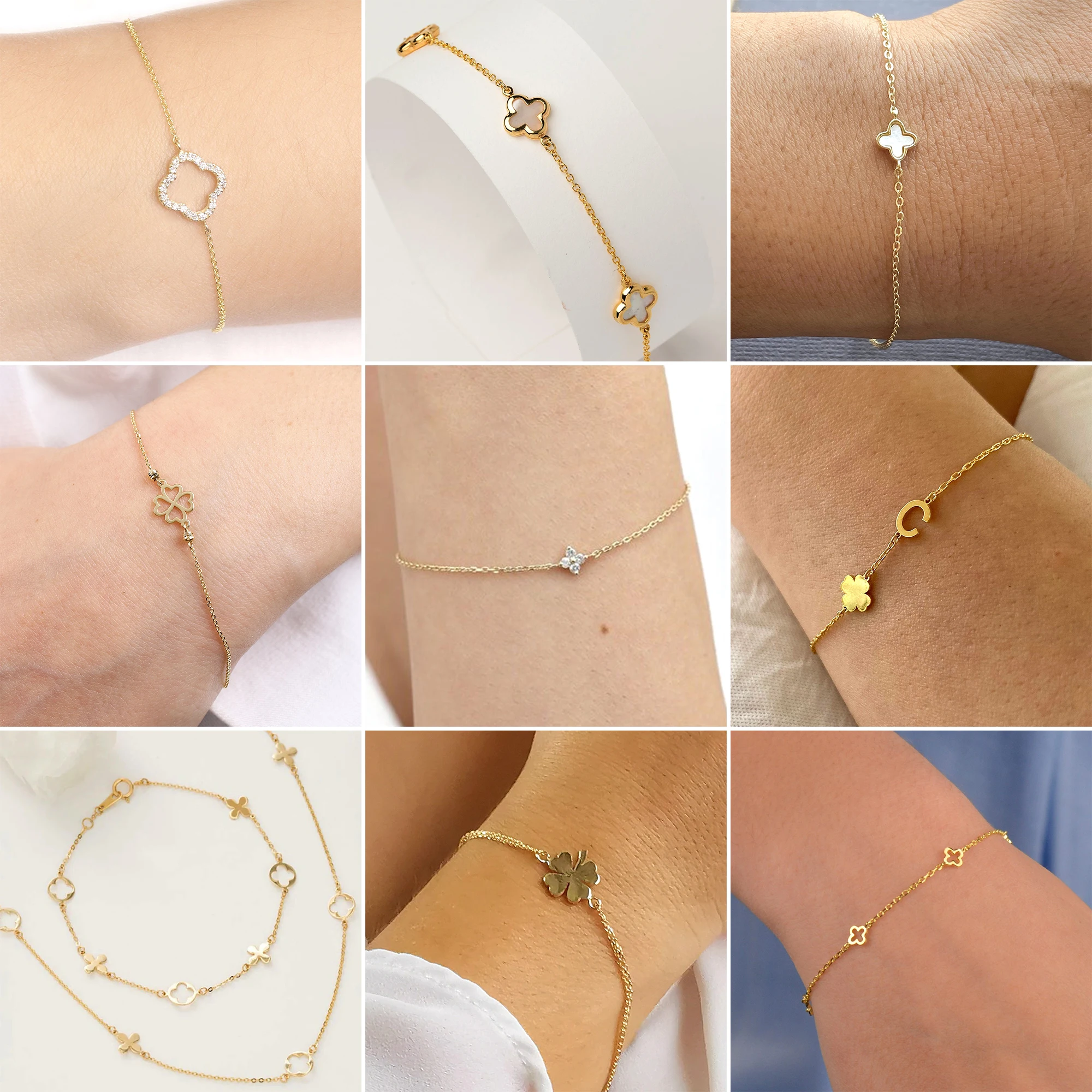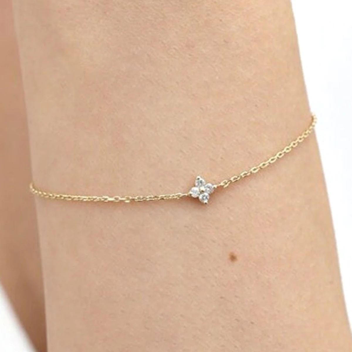 Custom Silver 925 14k Gold Plated Yellow Dainty Diamond Clover Bracelet With Full Cut Natural Stones