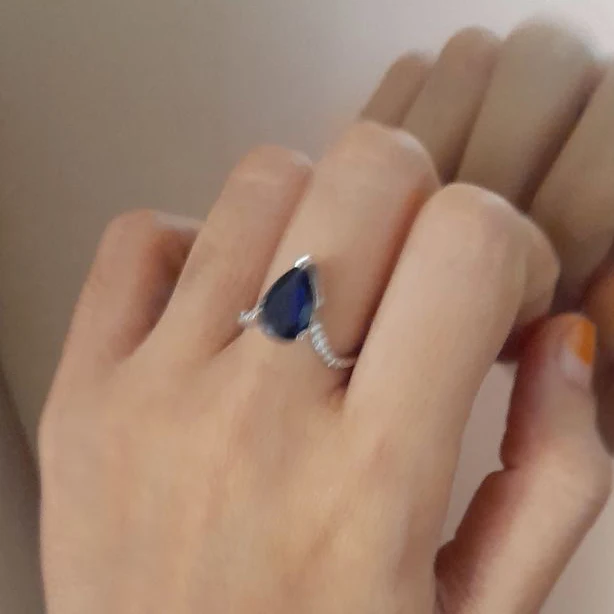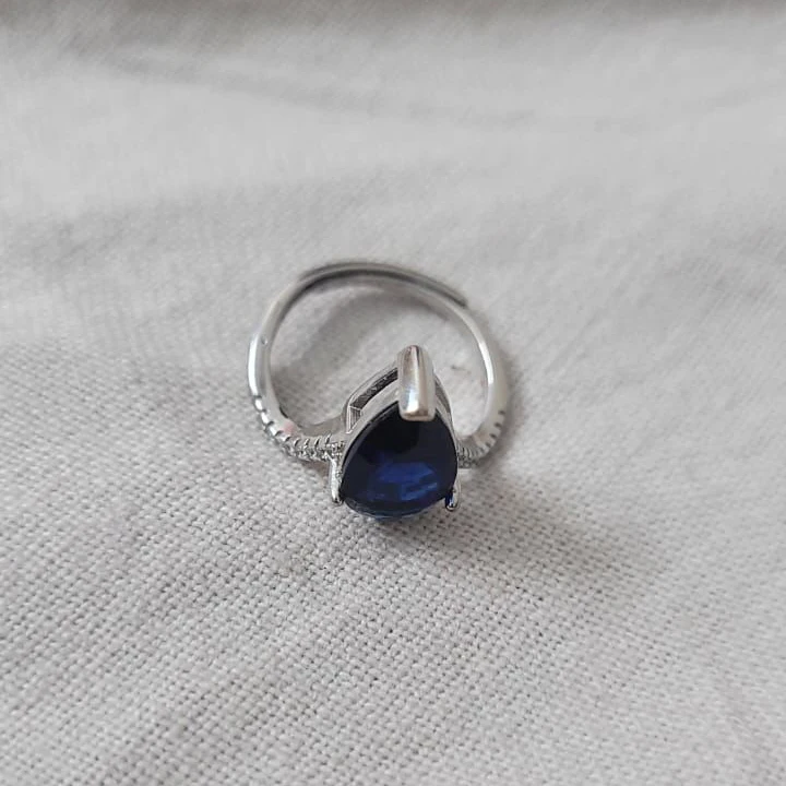 V Shape Finger Ring Blue Gemstone Sterling Silver Midnight Blue Ring
