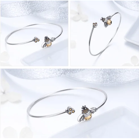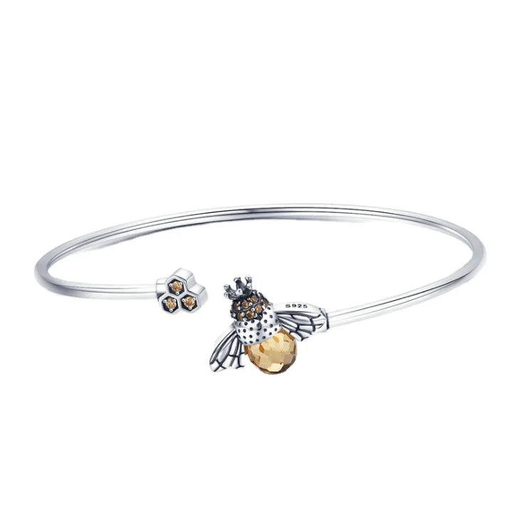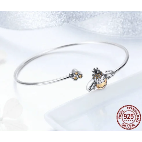 Queen Bee Charm Bracelet Bangle Adjustable Custom Real S925 Sterling Silver Bee Bracelet