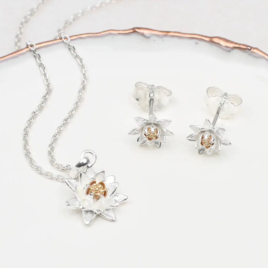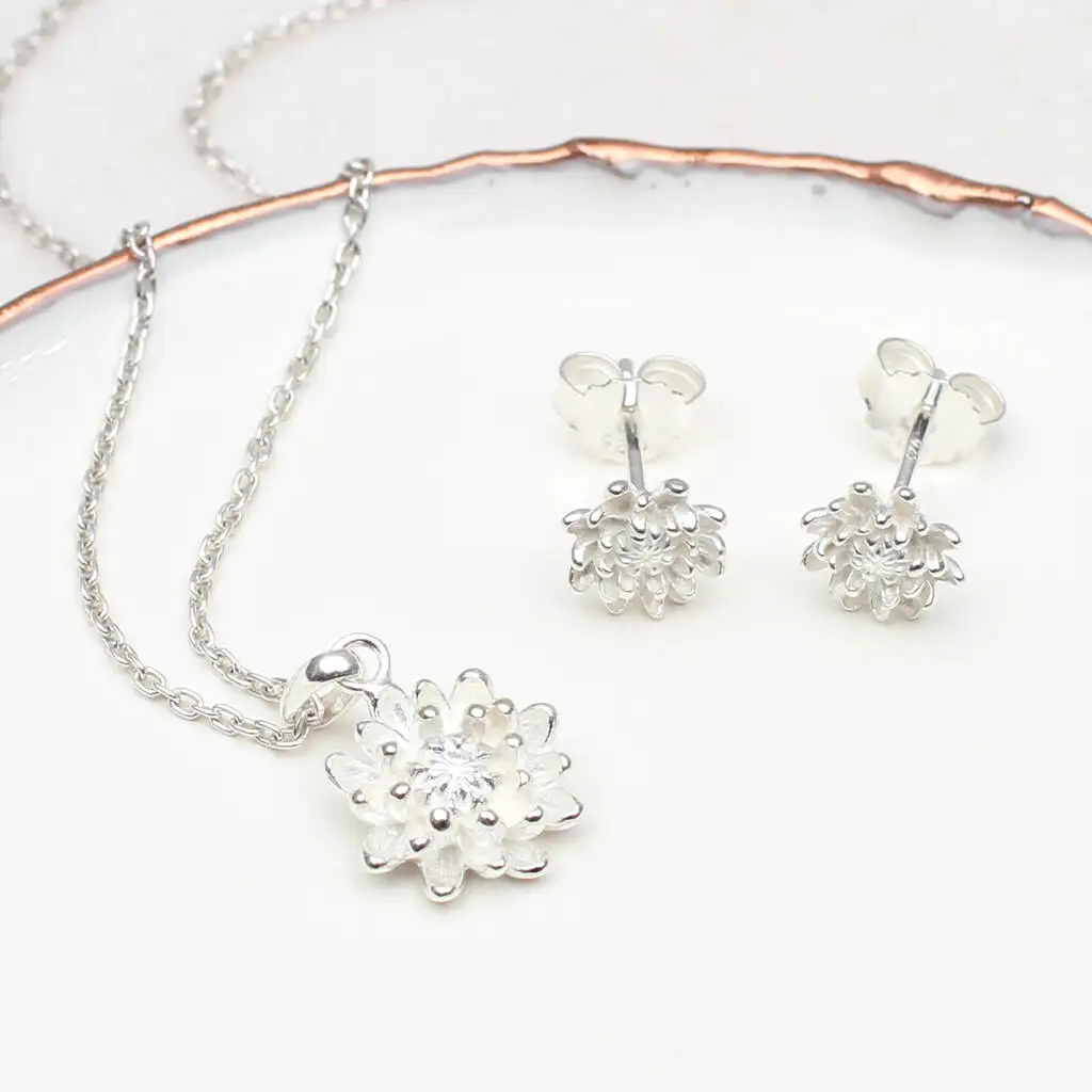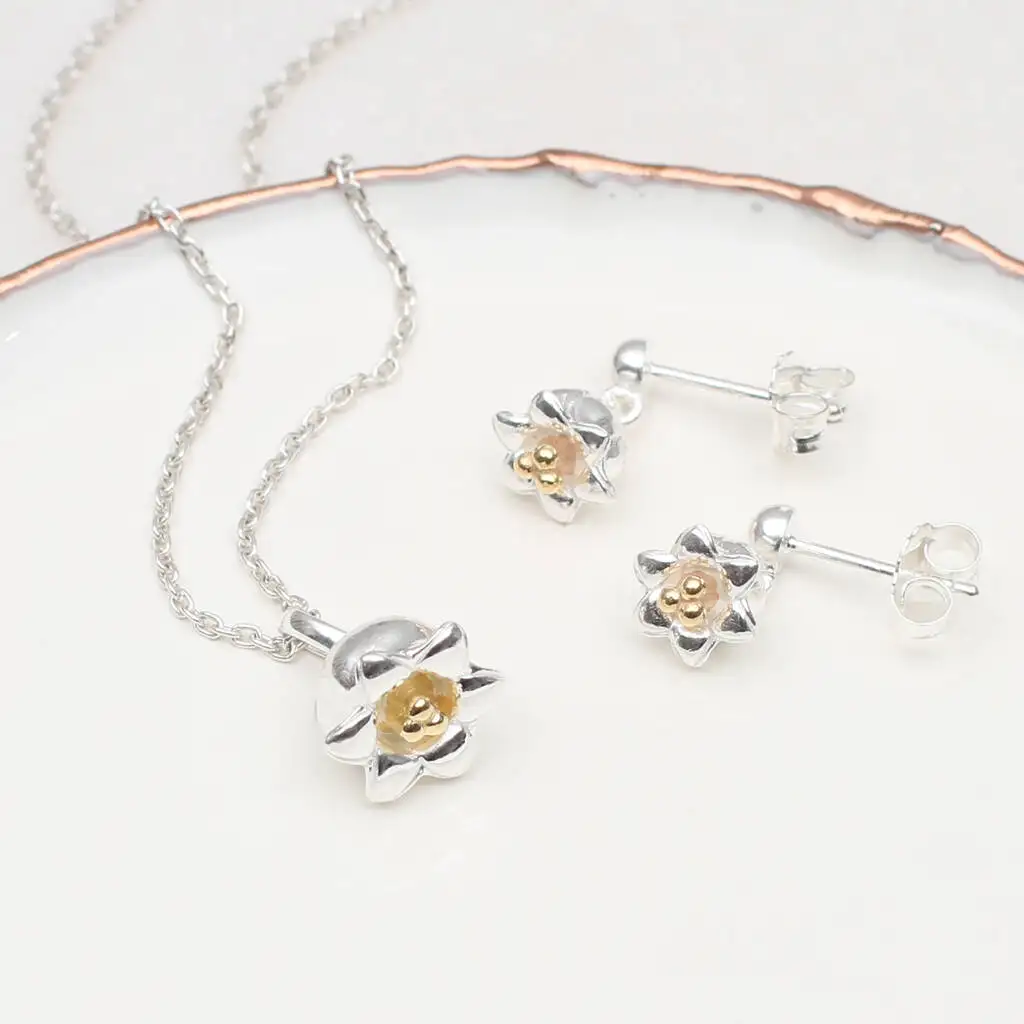 Guangzhou Sterling Silver Earring and Necklace Birth Flower Necklace Sets