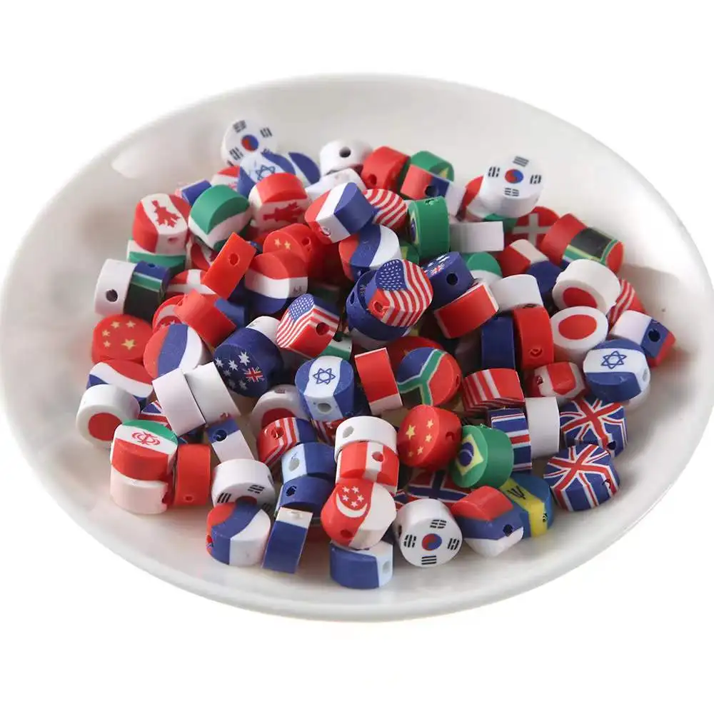 Hot Selling Round National Flag Clay Sprinkles Soft Pottery Beads for Slime Decoration DIY Filler Accessories