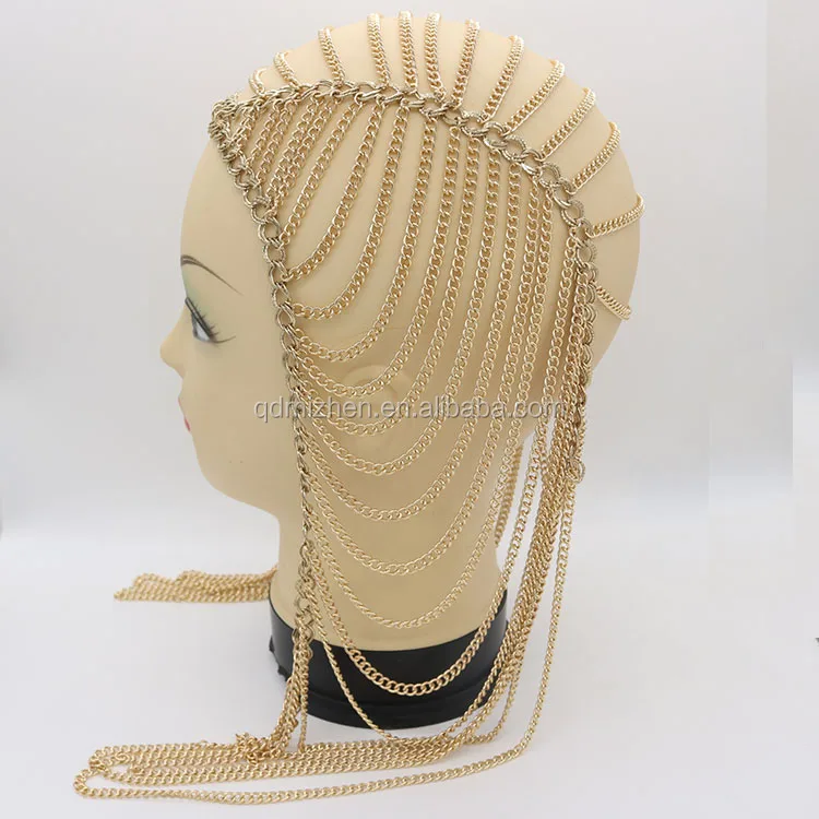 Handmade Sexy Chain Mail Head Cover Hairpiece Fashion Jewelry in Metallic Material