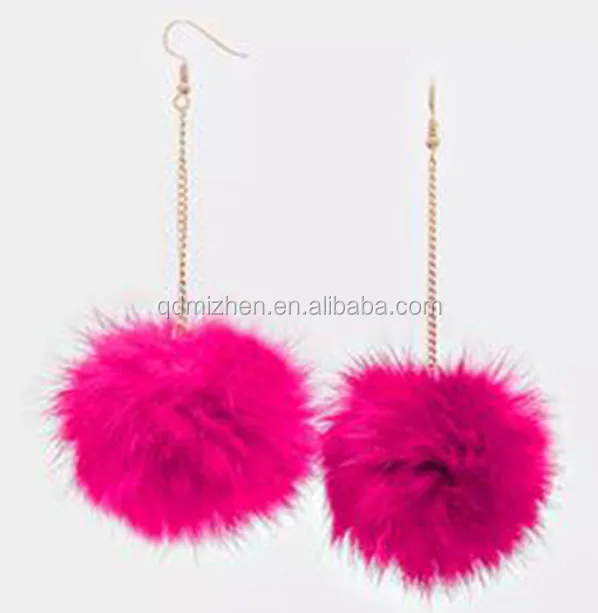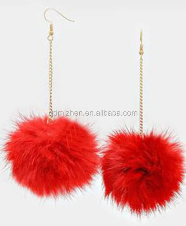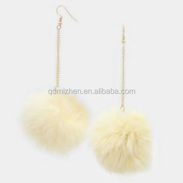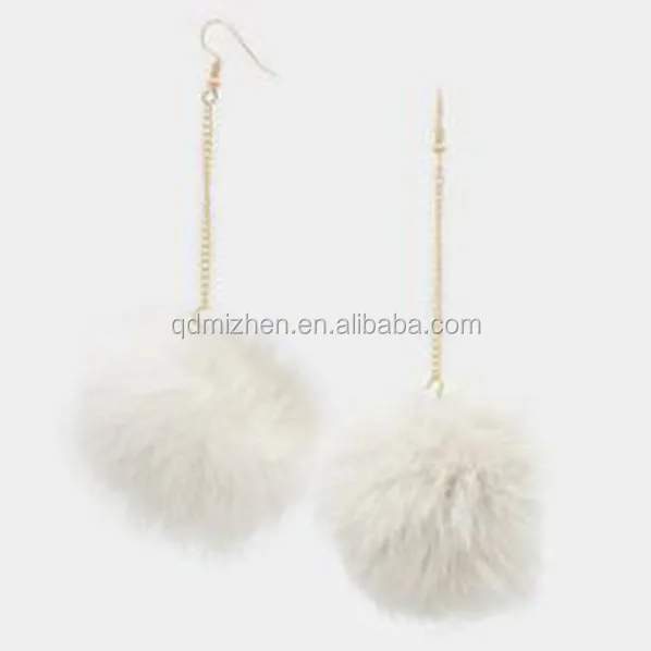 Dainty Brass and Zinc Alloy Long Chain Earring with Faux Fur Pom Pom for Wedding Party or Gift