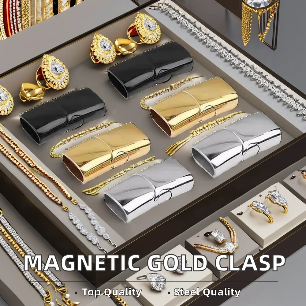 Fashion Stainless Steel Magnetic Clasp for Gold Bracelet Flat Charm Magnetic Leather Bracelet Findings for Jewelry Making