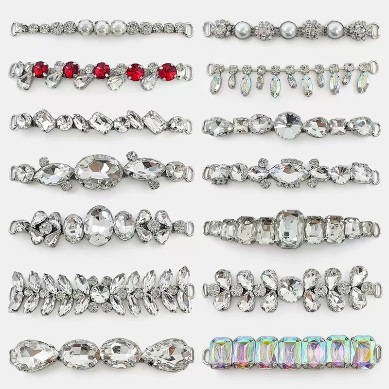 Personalized Shiny Full Diamond Shoe Decoration Hand-Sewn Chain Glass Crystal Shoe Flower Rhinestones Factory Direct Metal Beads