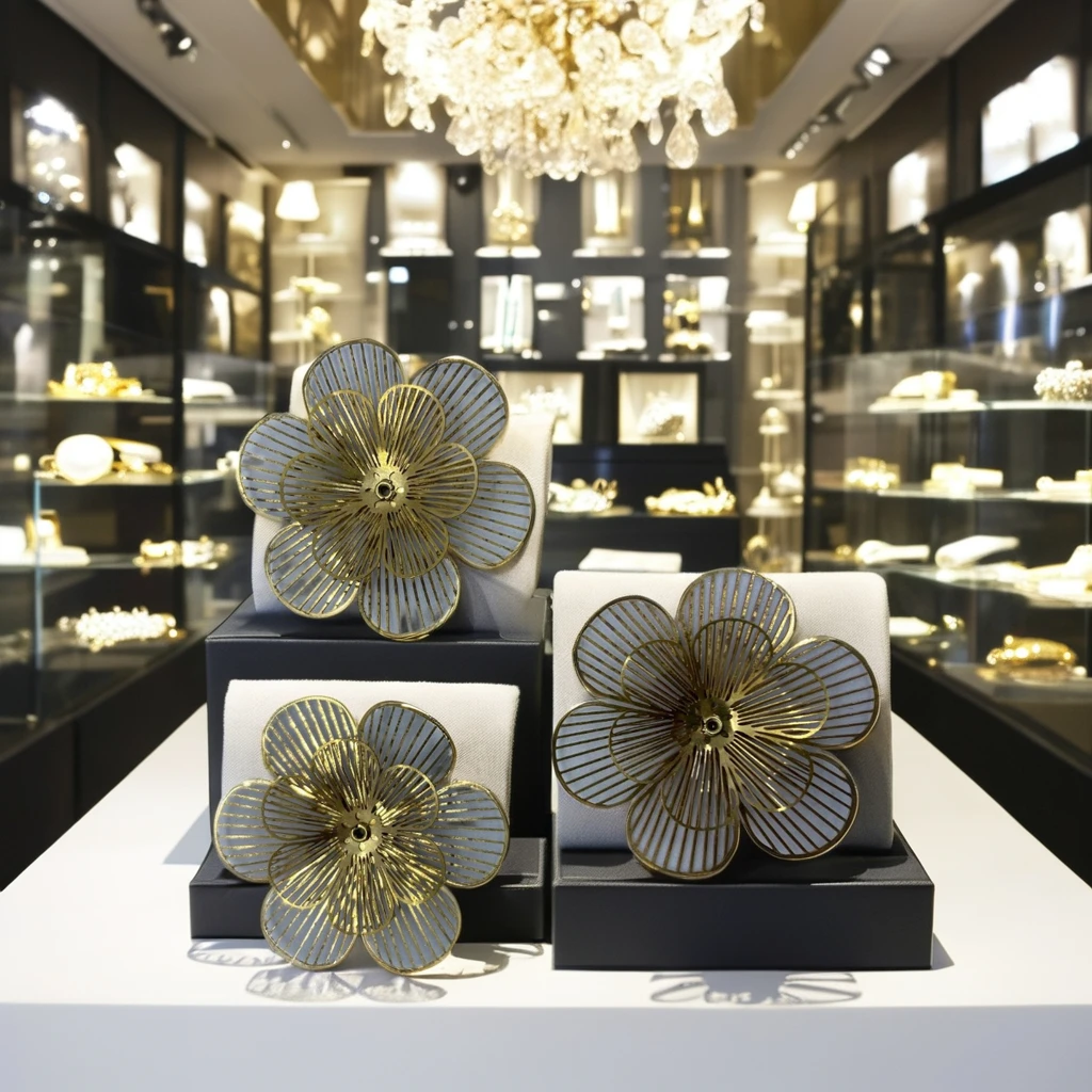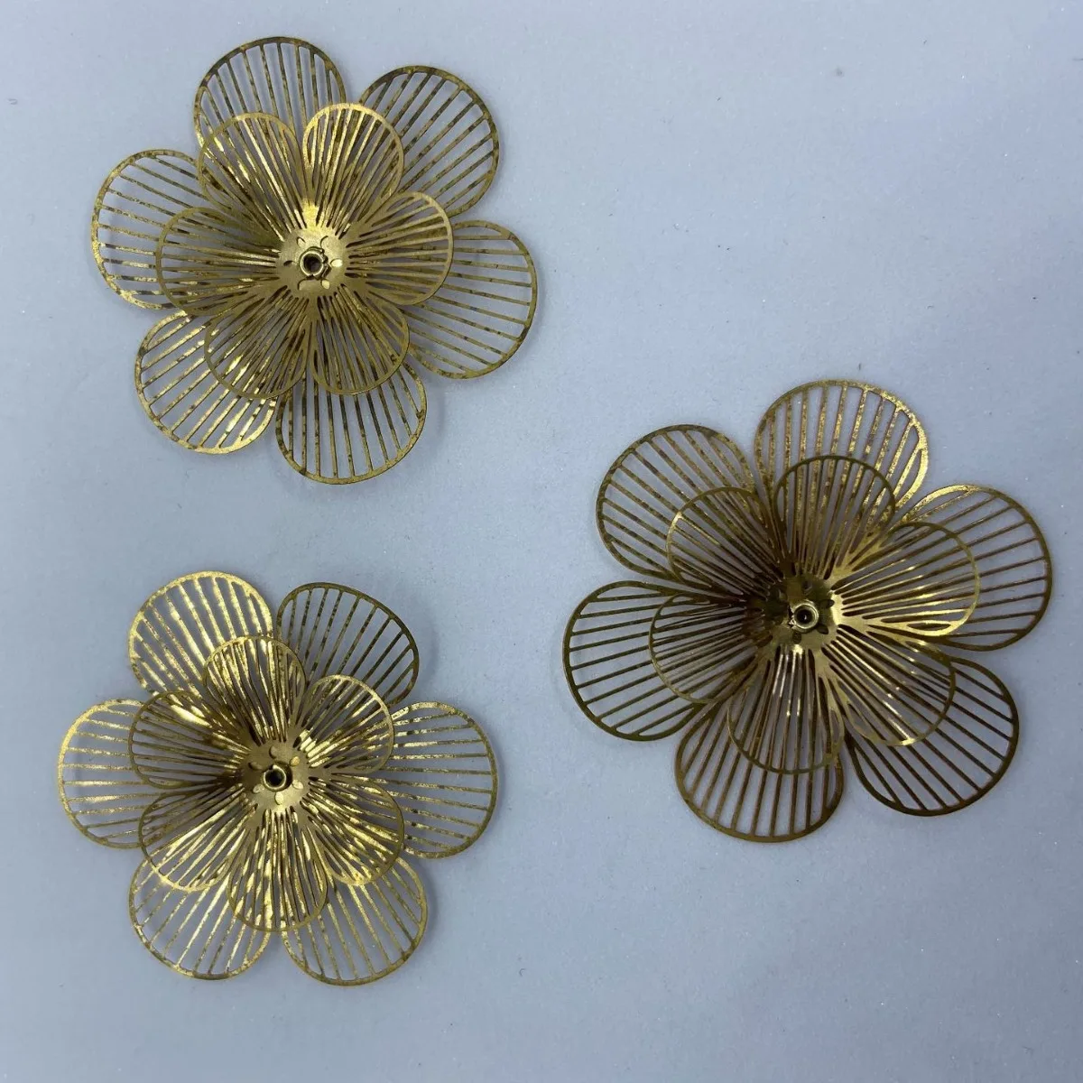 New Arrival Gold Plated Multi-Layer Hollow Petal Diamond Earrings Fashionable Long Tassel Metal Flower Earrings Wholesale Alloy