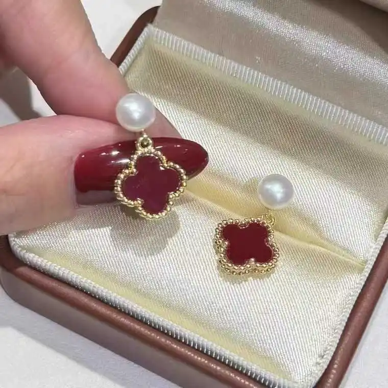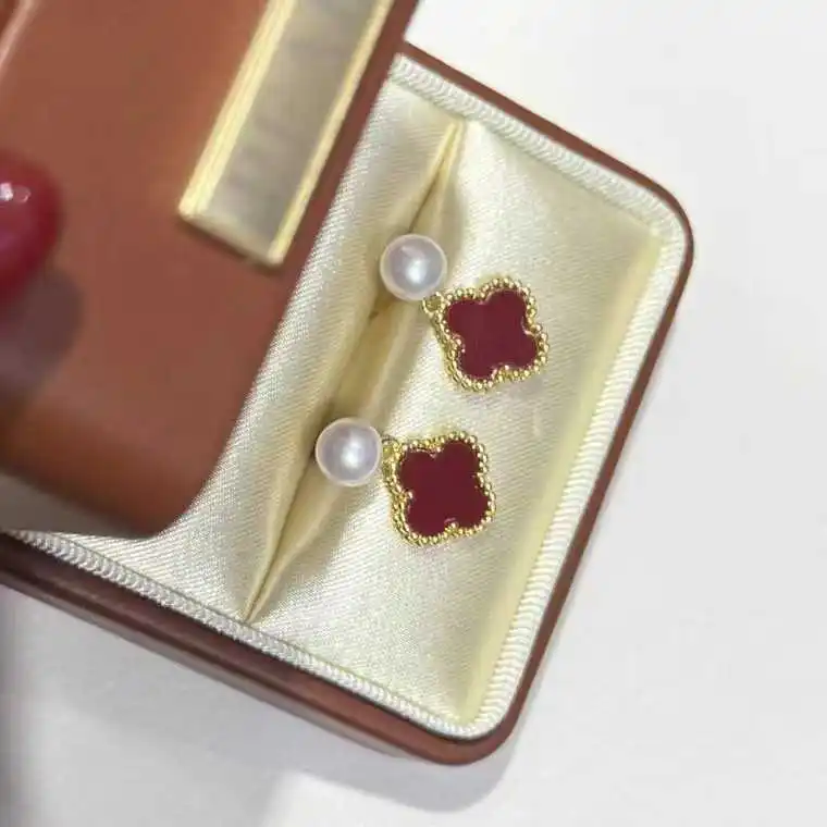 Women's Freshwater White Pearl Drop Earrings Inspired by Clover Stainless Steel with Gold Plating Bezel Setting Jewelry