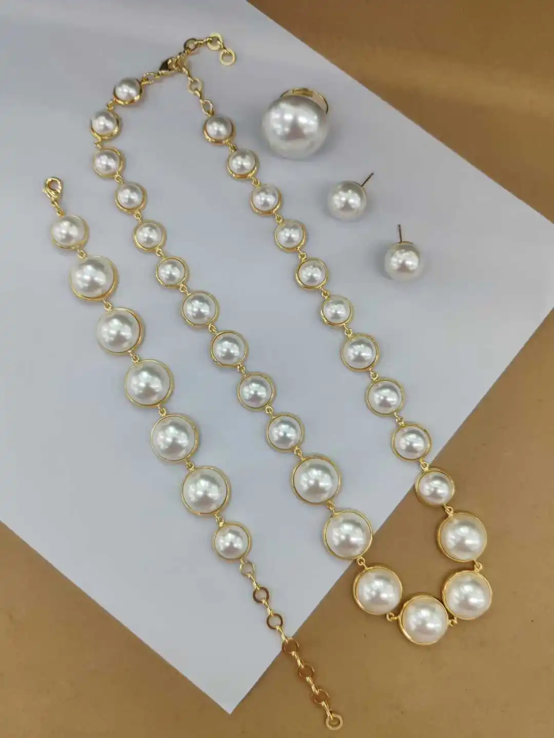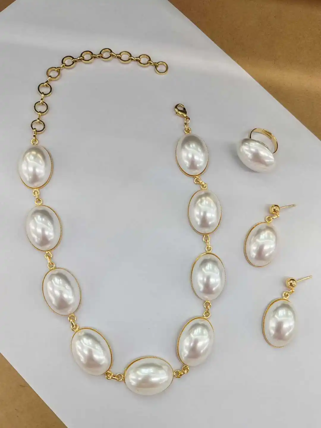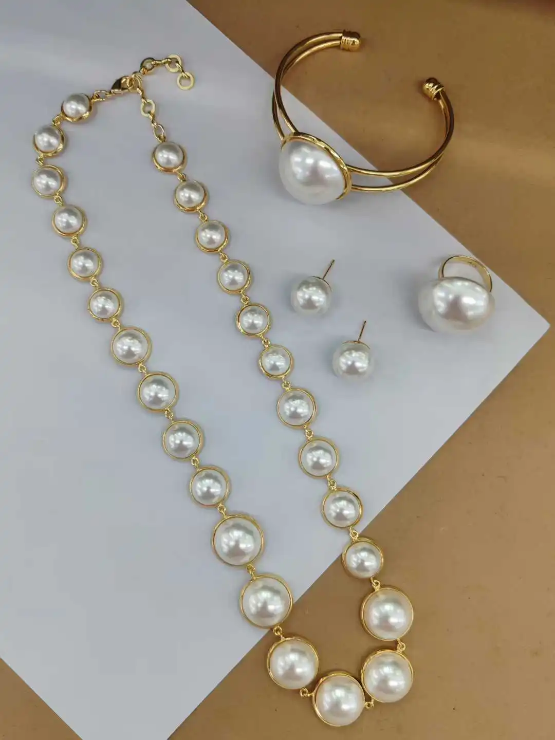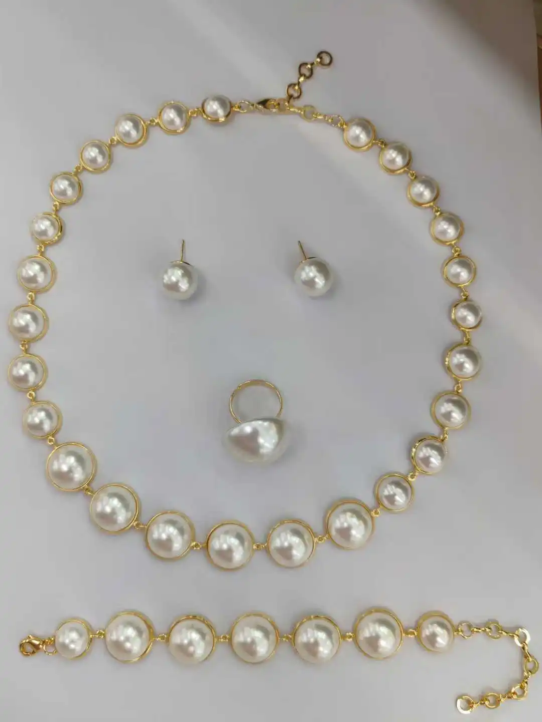 Colorful Luxury Imitation Pearl Beads Statement Dangle Big Pearl Pendant Necklace Earrings Set Fashionable Trendy Accessory