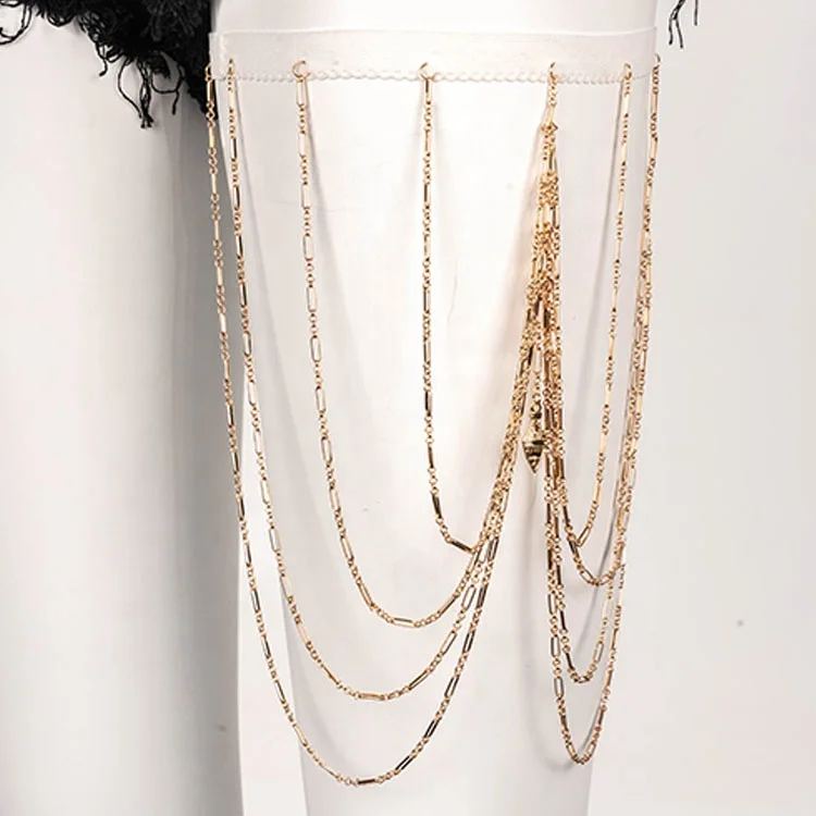 14K Gold Trendy Fashion Leg Chain Body Jewelry Sexy Thigh Jewelry Diamond Rhinestone Yellow Gold Opal Bra Children Trendy Opp