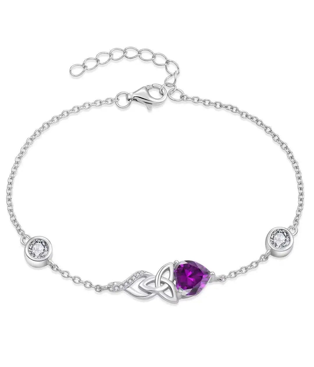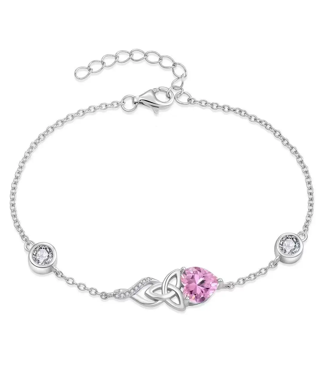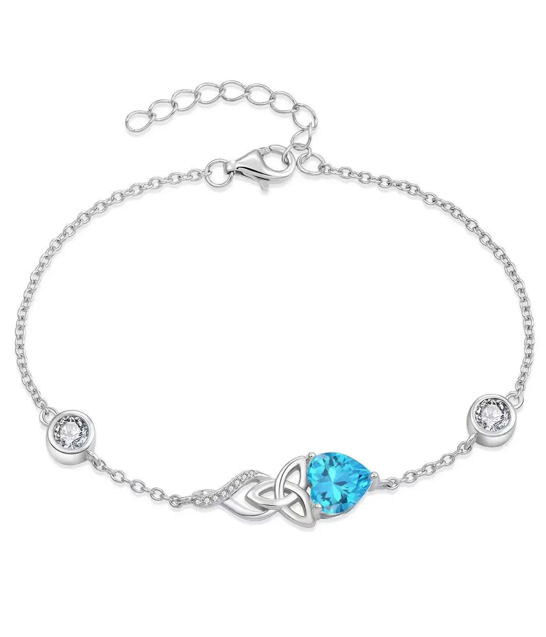 Sterling Silver Infinity Celtic Knot Beaded Bracelet with Zircon Birthstone Trendy Irish Jewelry Gift for Women