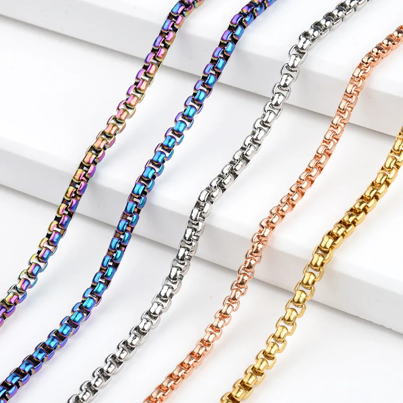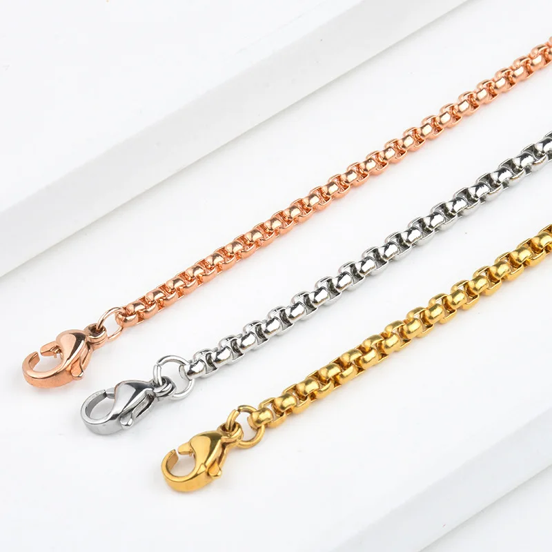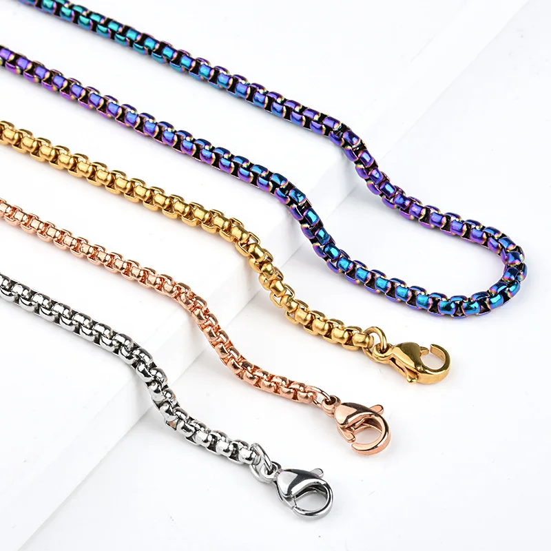 Stainless Steel Gold Plated Square Pearl Box Link Jewelry Chain for Men Women Anniversary