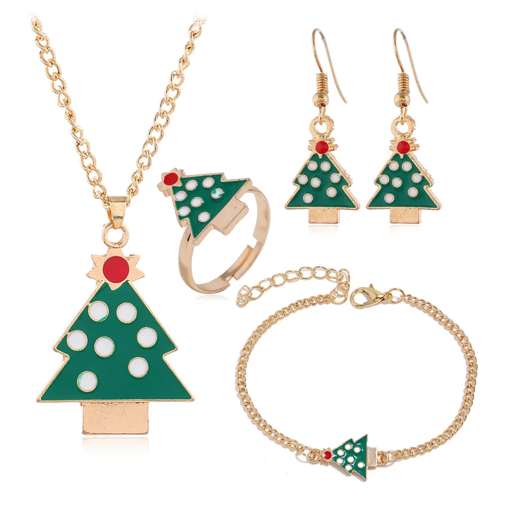 Christmas Ornaments Drip Oil Christmas Tree Gold Plated Necklace