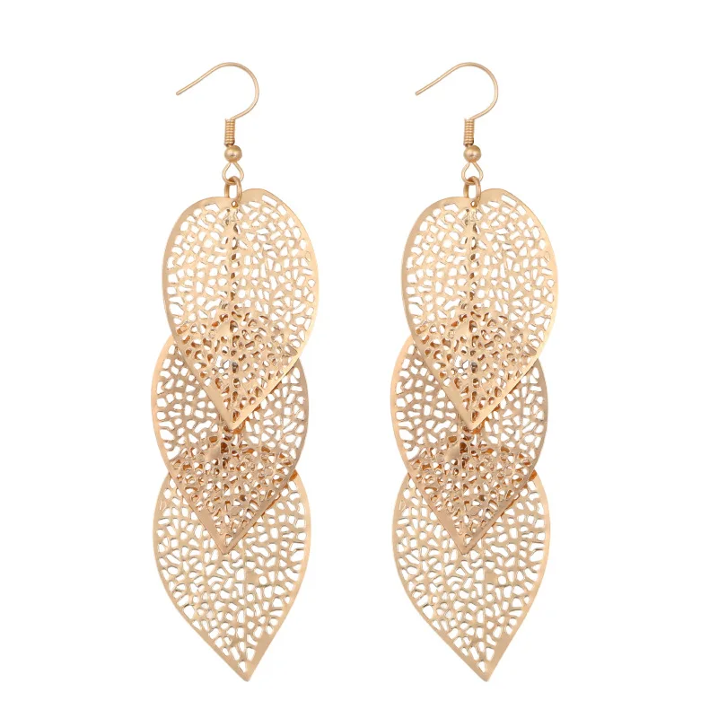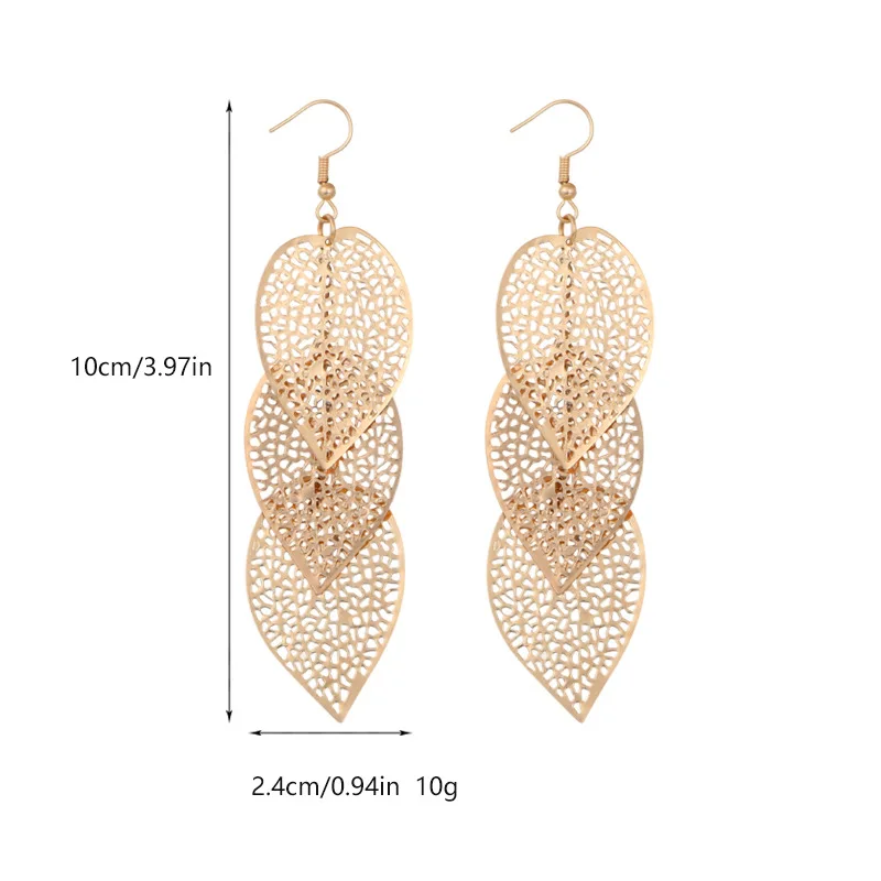 Wholesale Luxury Women's Gold Tassel Pendant Earrings Vintage Style Hollow Leaf Drop Jewelry Great for Gifts Made Alloy Material