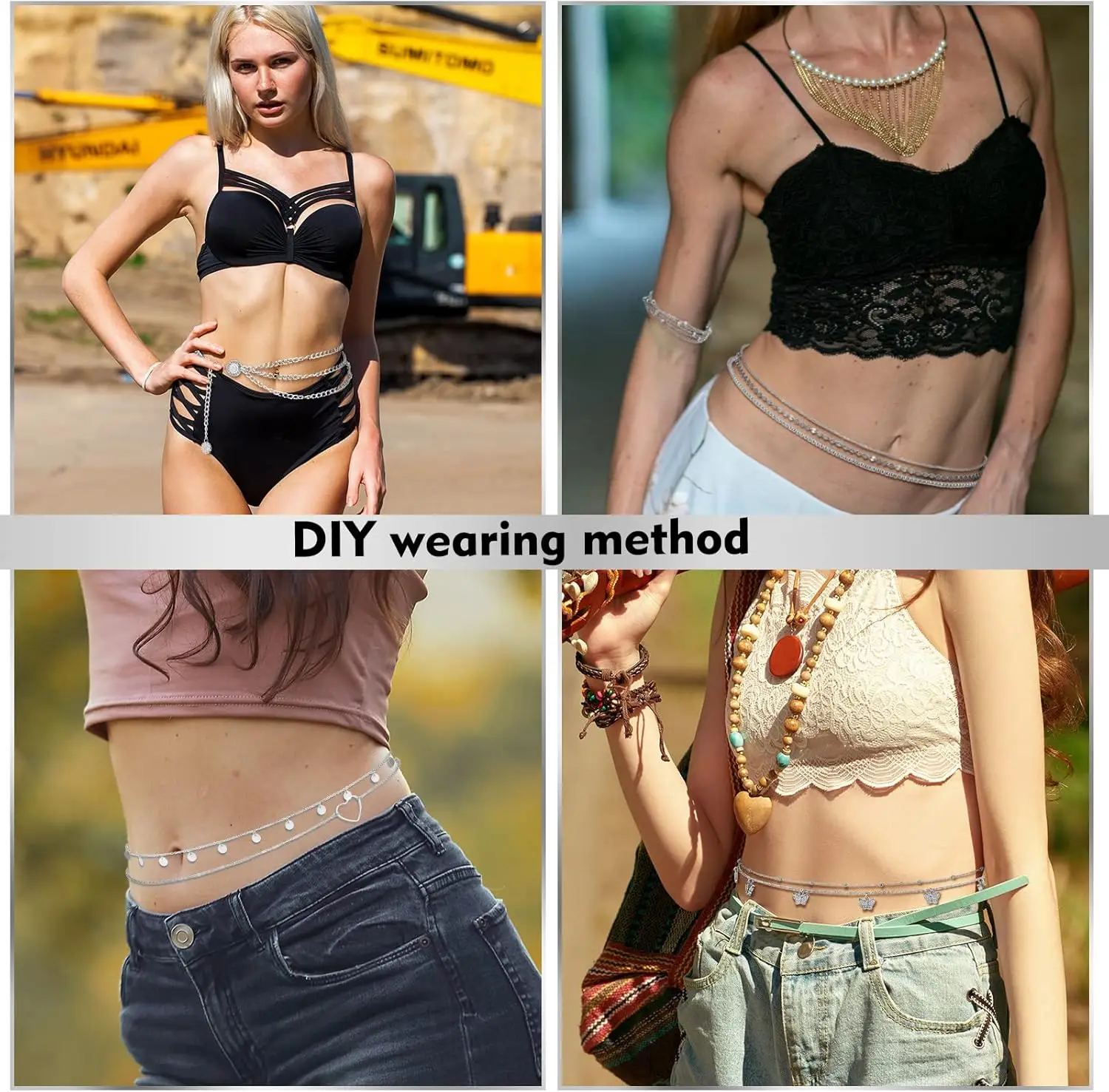 Lenwen 10 Pcs Alloy Belly Waist Chain Adjustable Summer Beach Women's Multilayer Body Jewelry Decorations