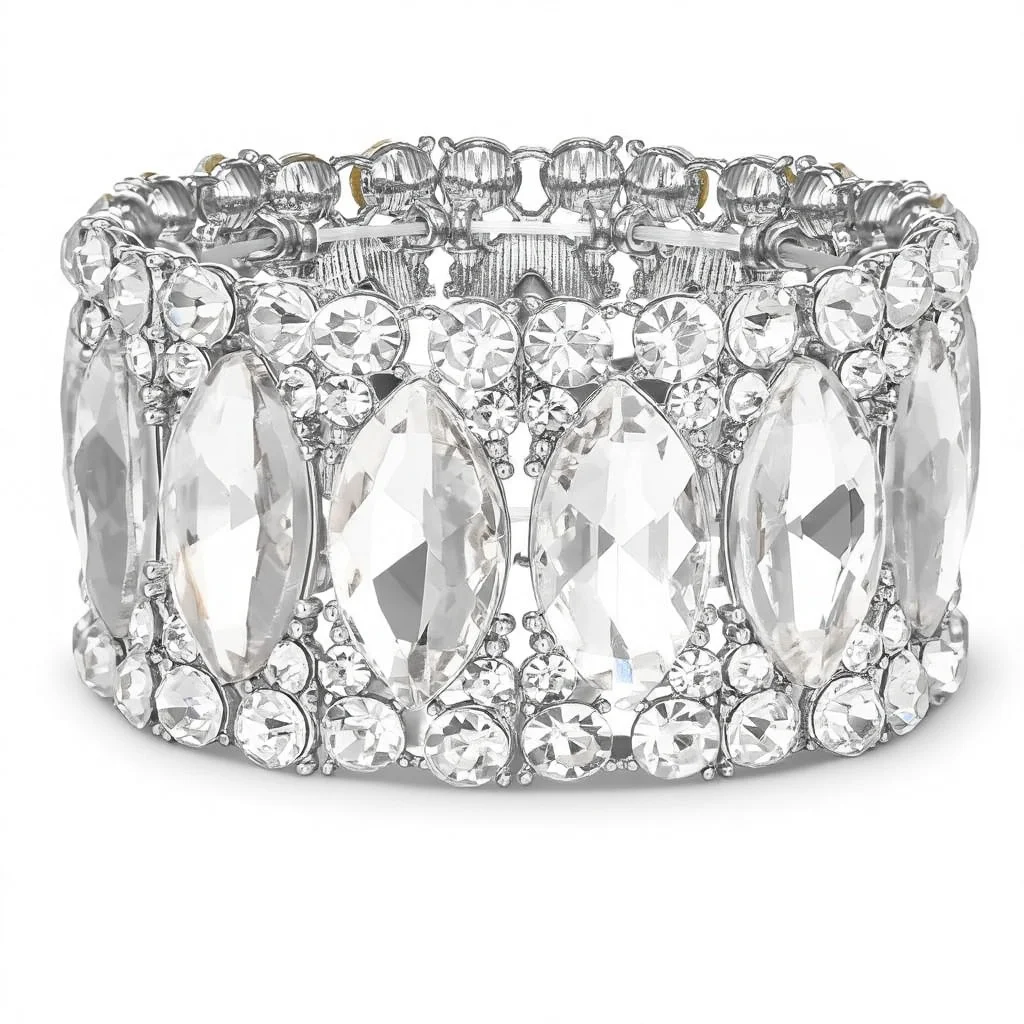 BriLove Wedding Bridal Elegant Crystal Double Row Rhinestones Marquise Cluster Stretch Bangle Bracelet From China for Bride