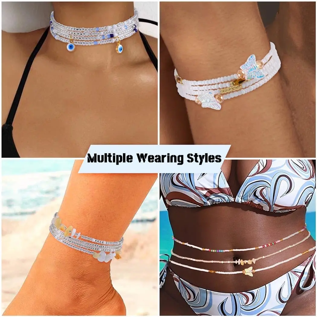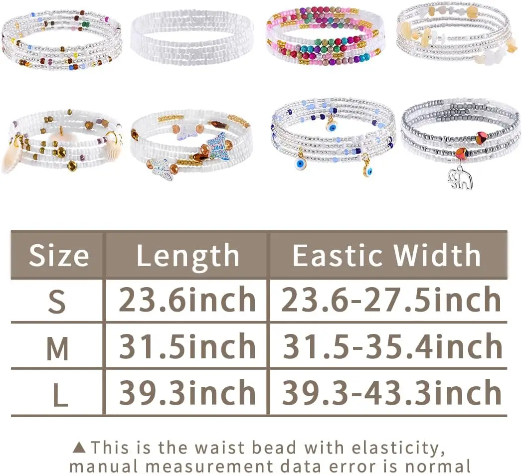 ELABEST 24-47inch African Waist Beads Women 8Pcs Elastic Natural Stone Alloy Colorful Waist Jewelry Accessories