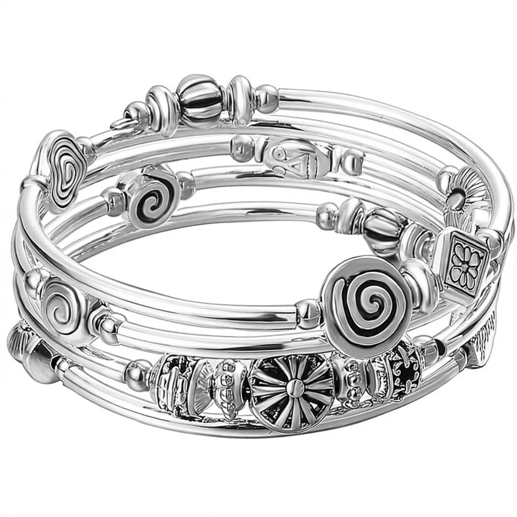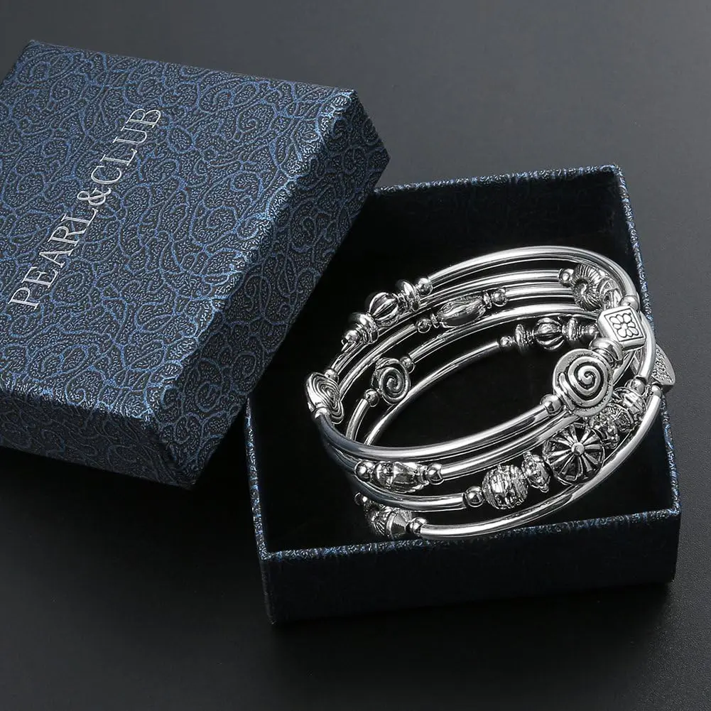 Beaded Pearl Natural Stone Bangle Wrap Bracelet Bohemian Style Multilayer Charm Thick Silver Metal Beads Gift Women