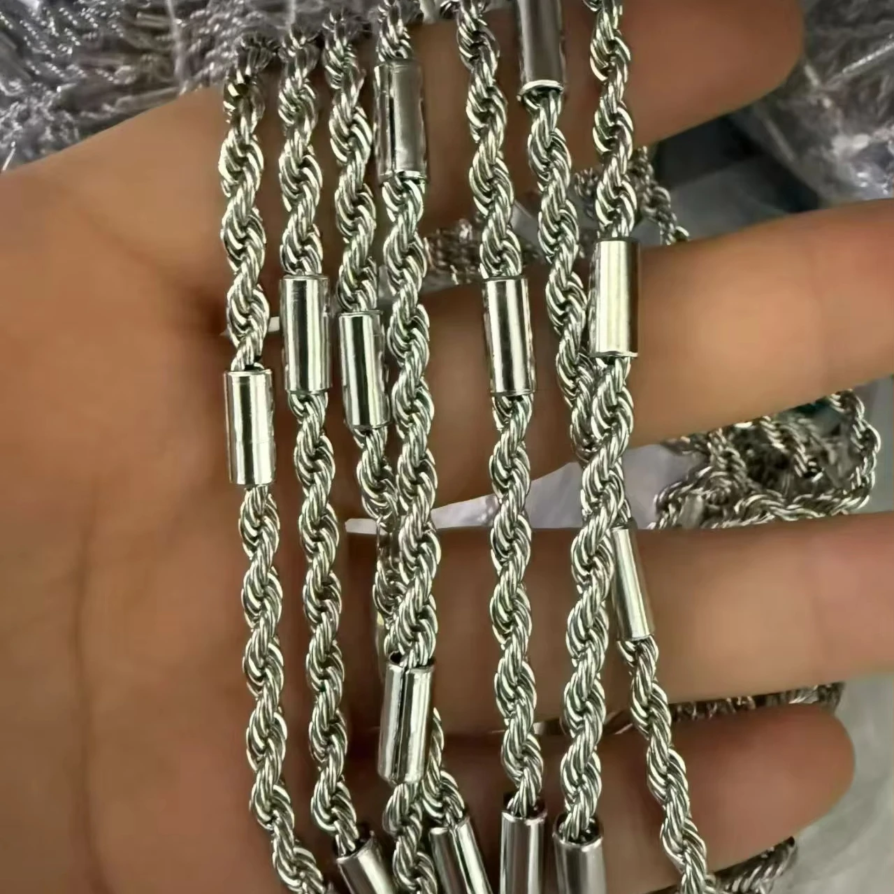 Gold Plated Natural Stone Bezel Setting Vintage Twist Chain Stainless Steel Bracelet Chunky Rope Men Women Buddhism Inspired