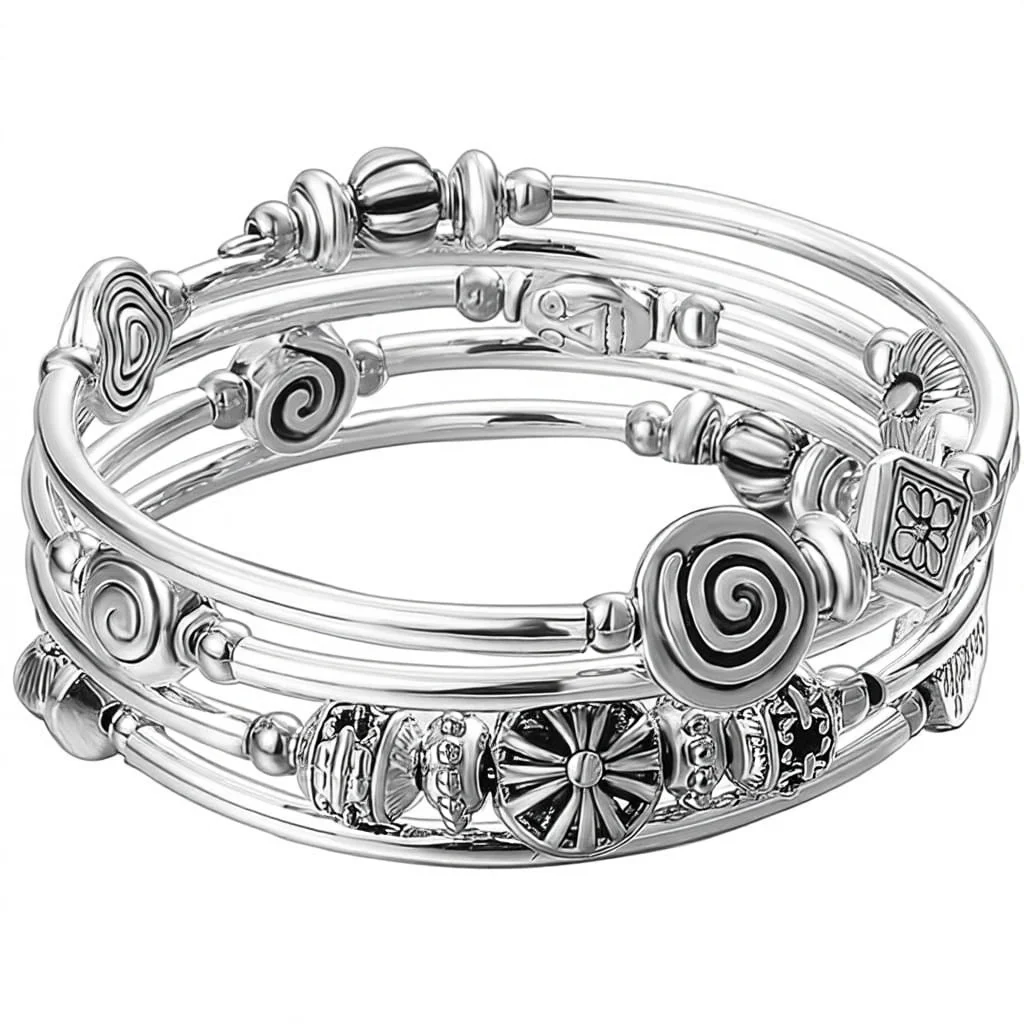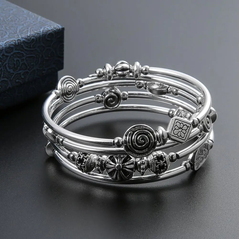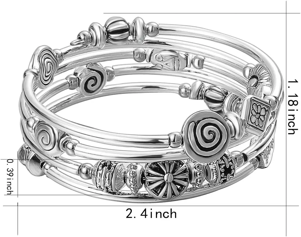 Natural Stone Beaded Pearl Bangle Wrap Bracelet Fashion Bohemian Jewelry Multilayer Charm Thick Silver Metal Beads Gift Women