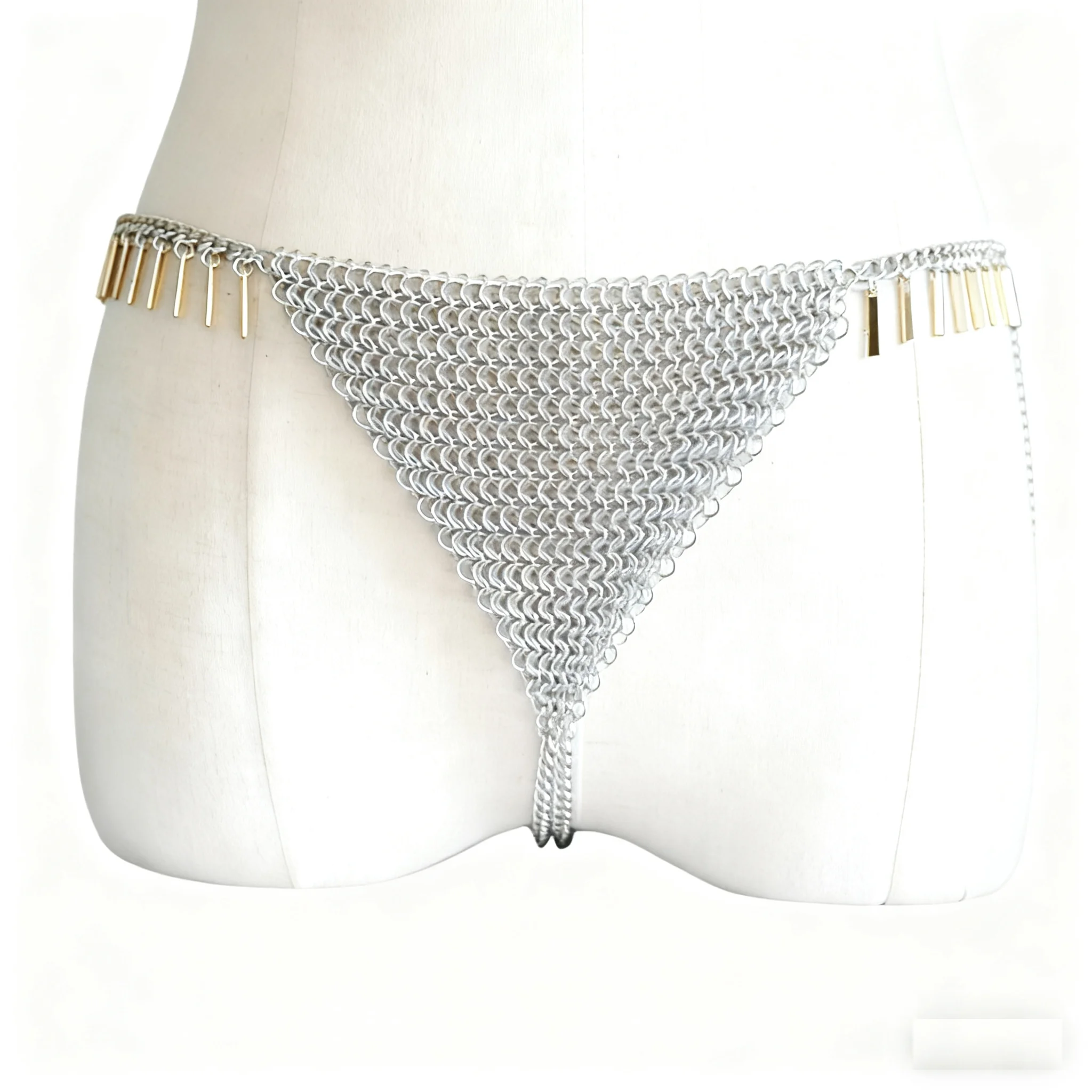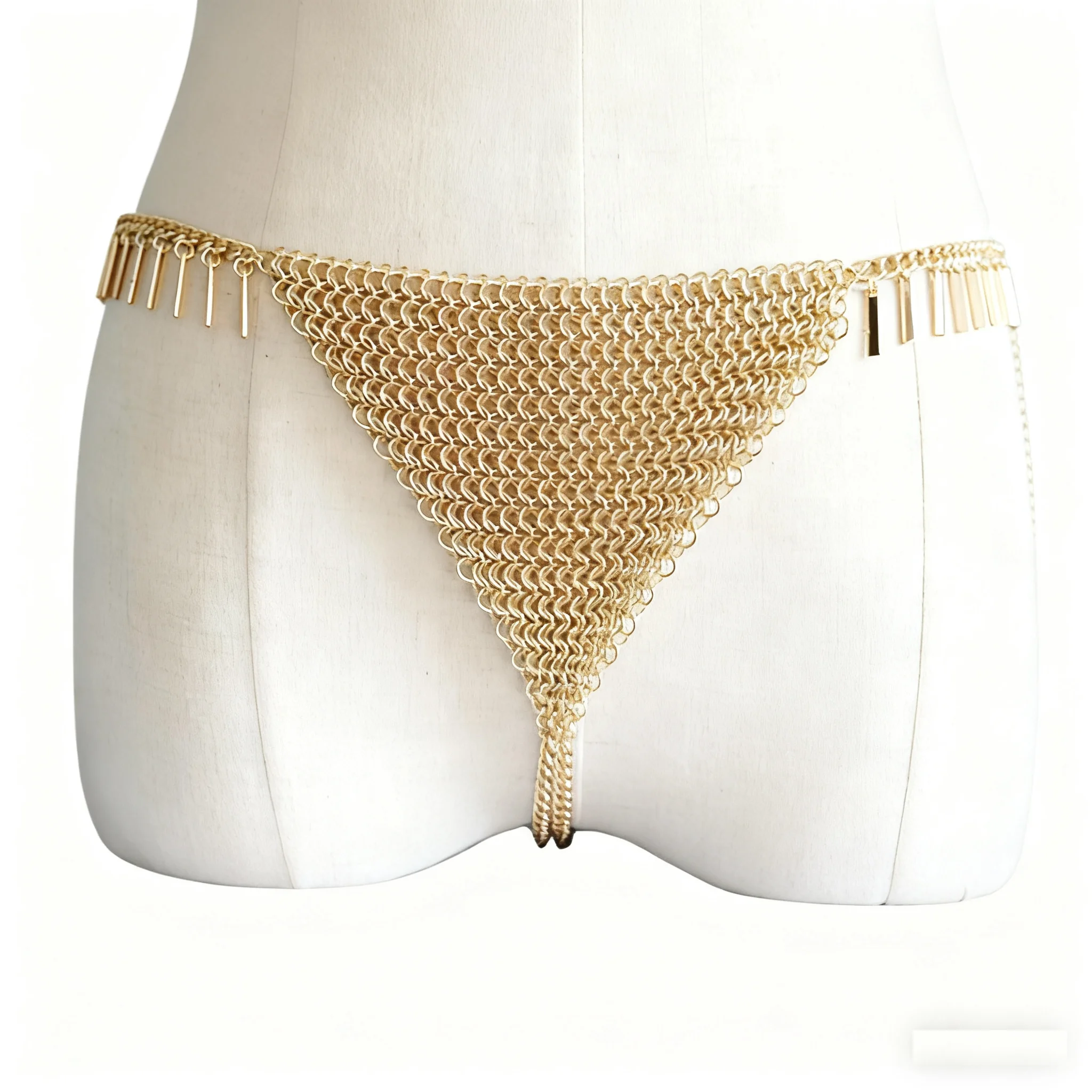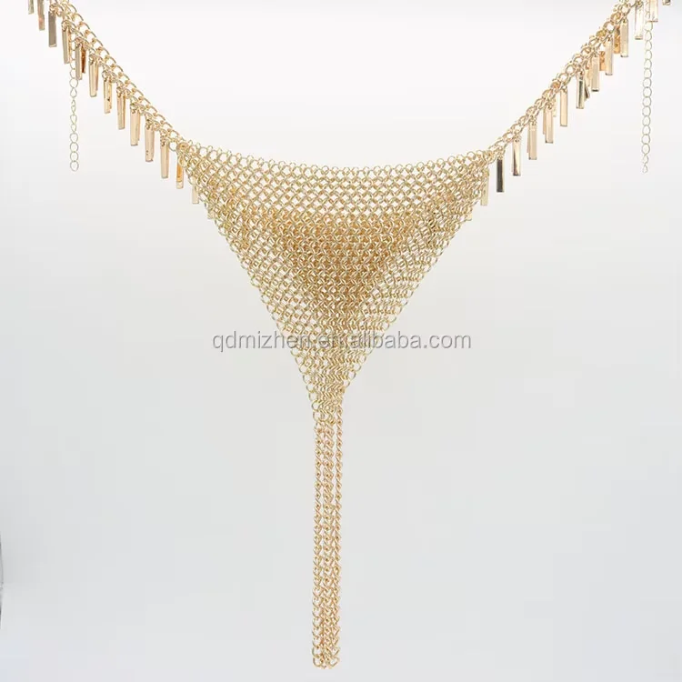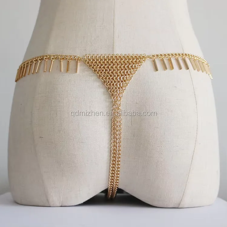 Sexy Classic Rectangle Stick Tassels Gold Chainmail Belly Chain Lingerie Panty Body Jewelry for Party Wedding Anniversary