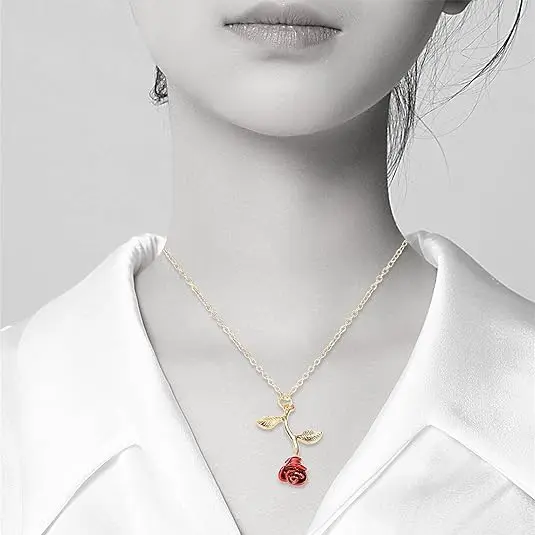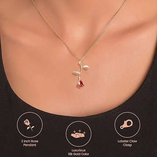 Women's Gold Plated Rose Zircon Necklace with Pendant Cute Aesthetic Classic Preppy Jewelry Trendy Teen Girls Wedding Party