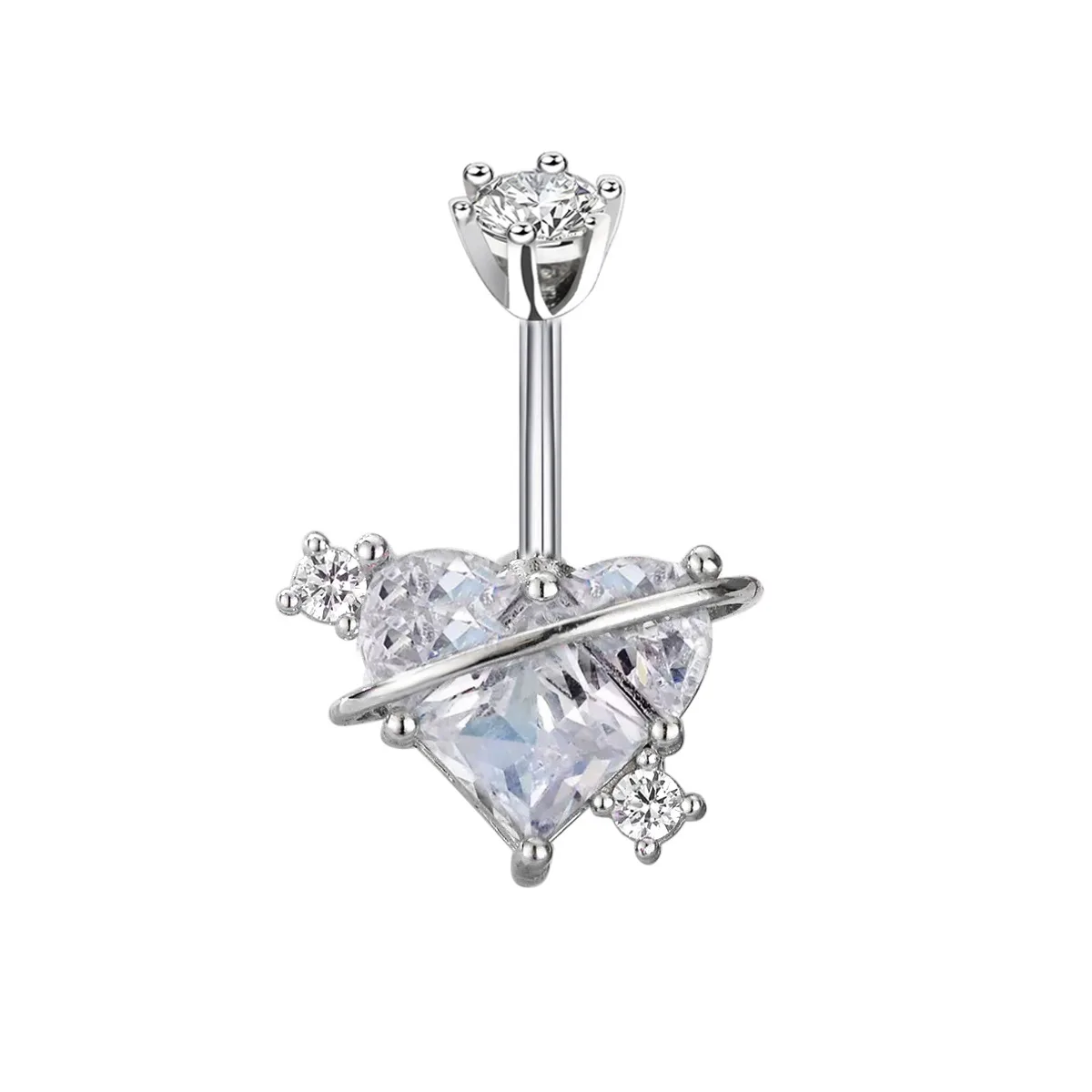 Women's Heart-Shaped Zircon Stainless Steel Punk Style Gold-Plated Navel Ring Body Jewelry Piercing Nail Beach Accessory