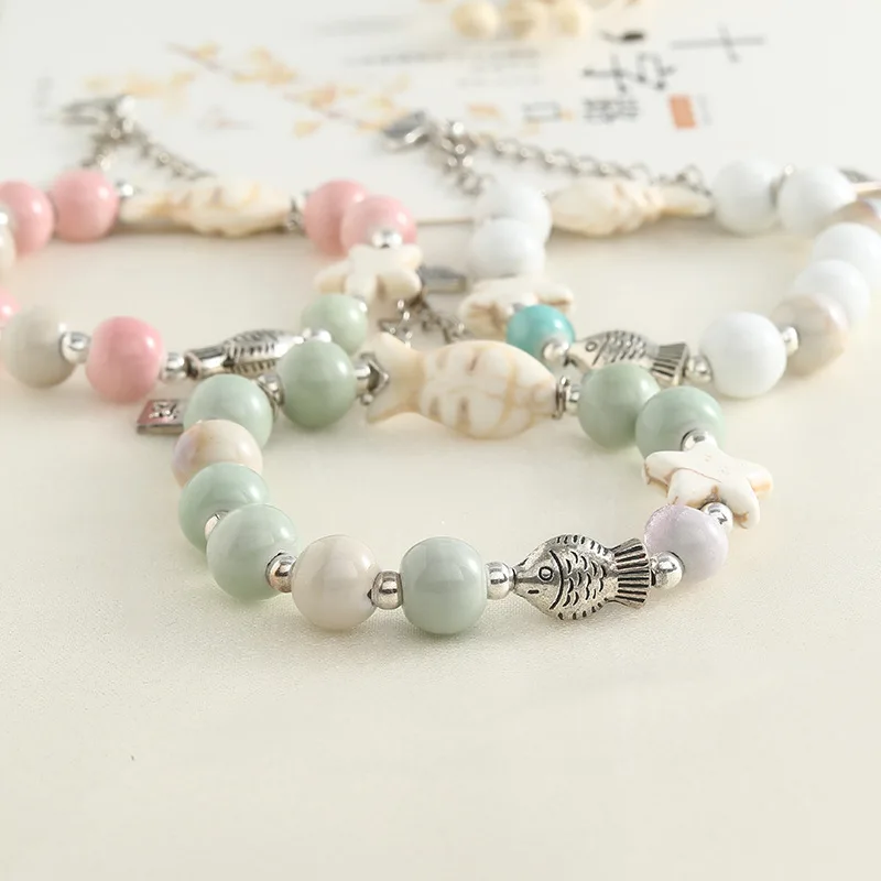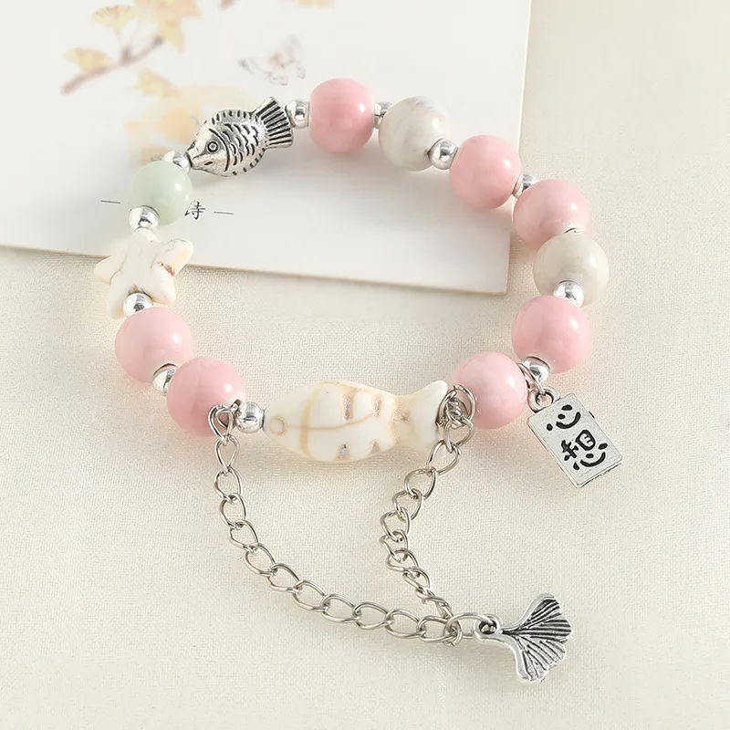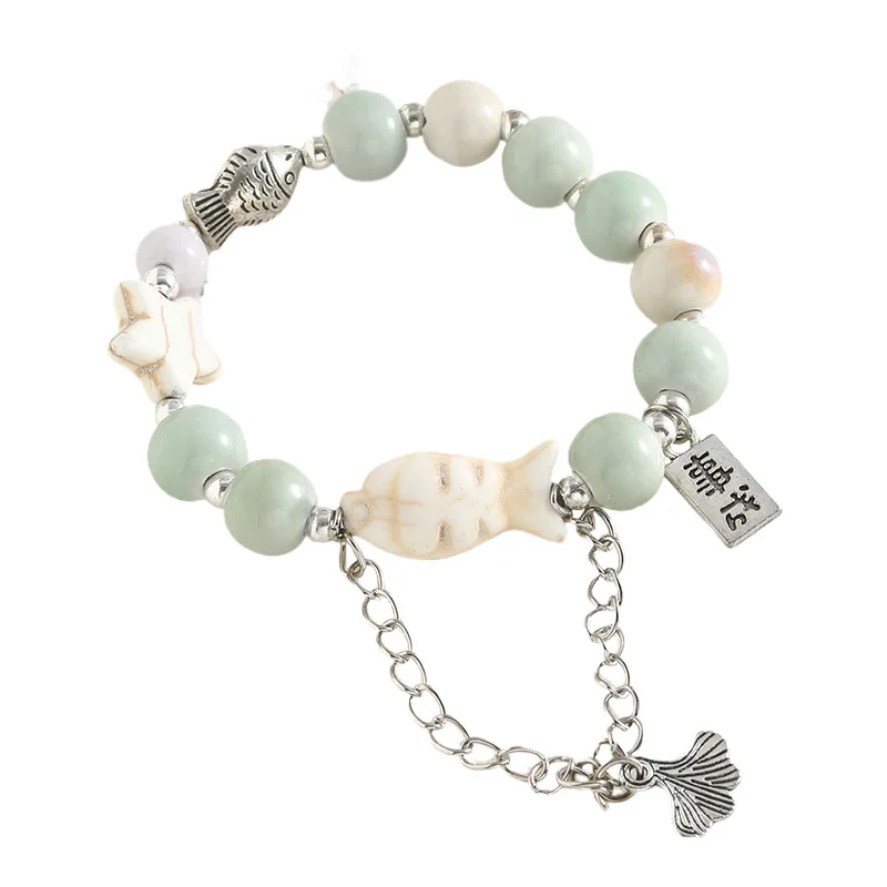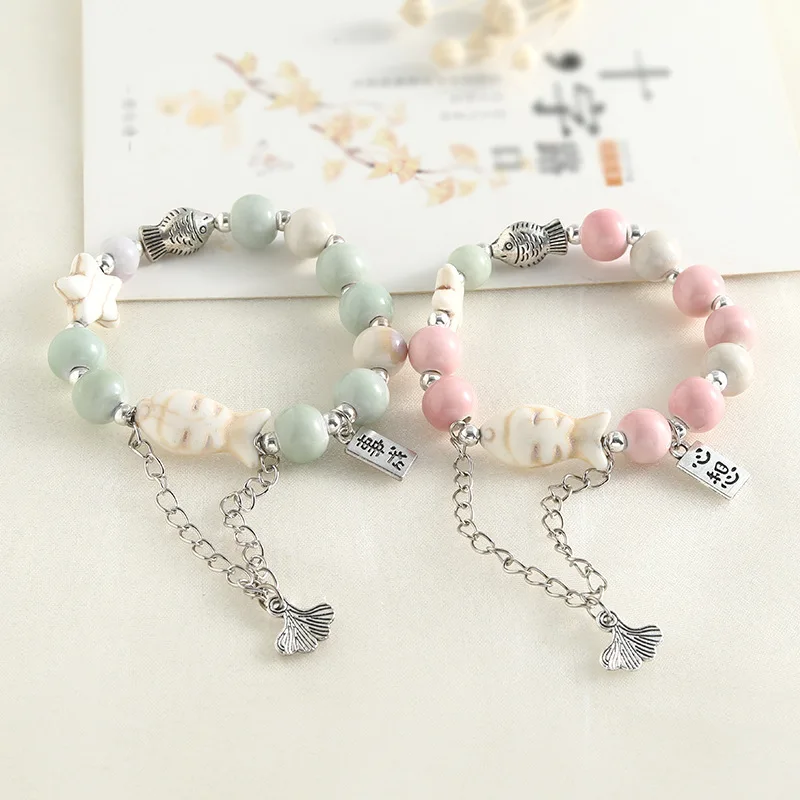 Year Year Fish Fresh Sweet Jingdezhen Made Natural Stone Ceramic Beaded Bracelet Niche Versatile Light Luxury High-end Women Hot