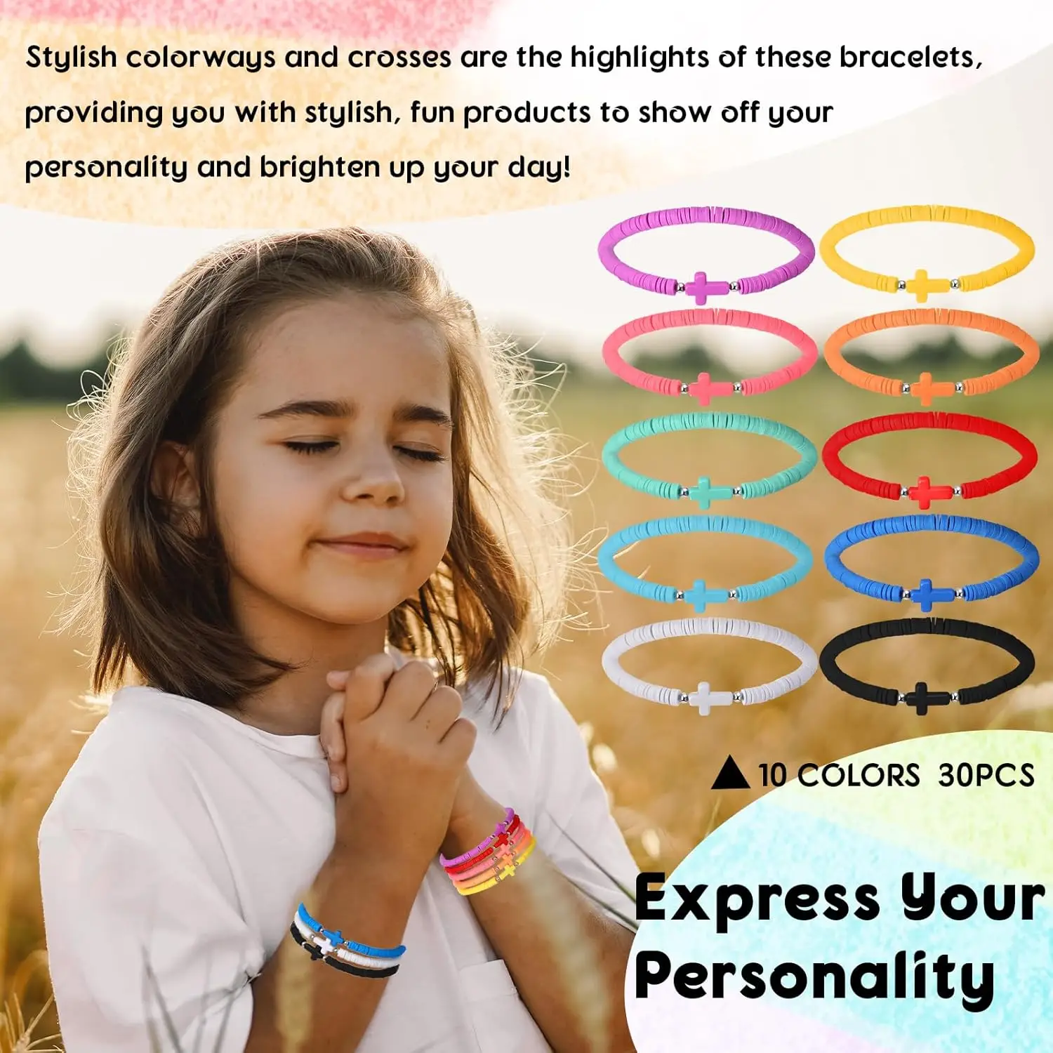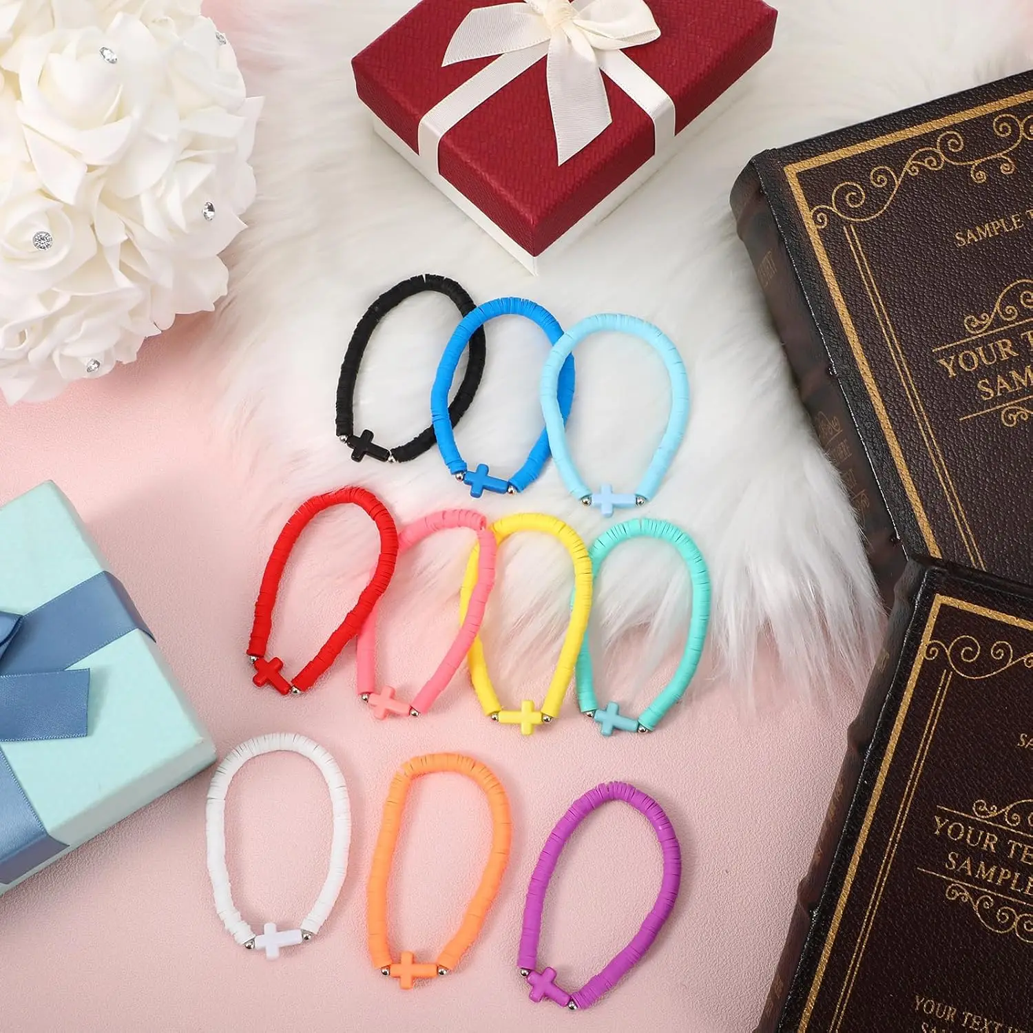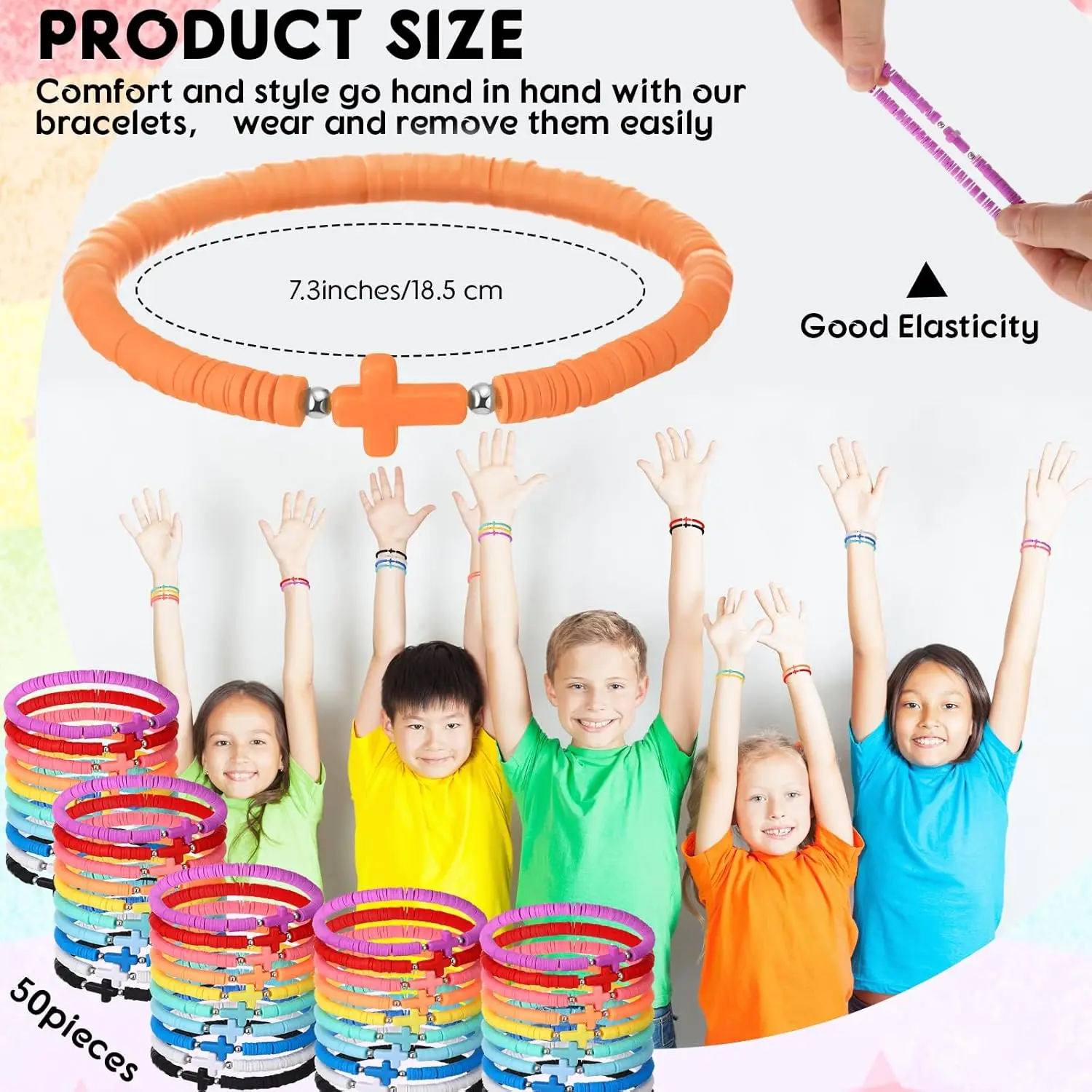 Landical 30/50 Pcs Cross Bracelets Bulk Handmade Elastic Colorful Natural Stone Beads Religious Christian Women Kid China