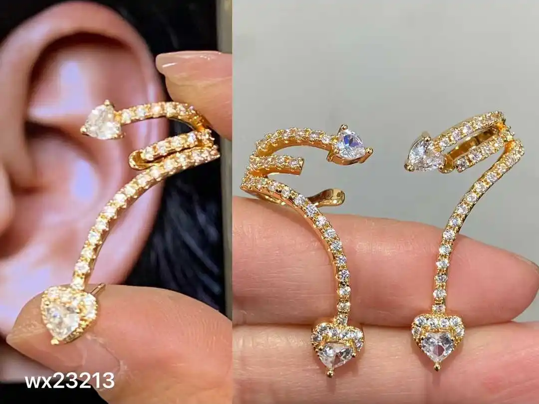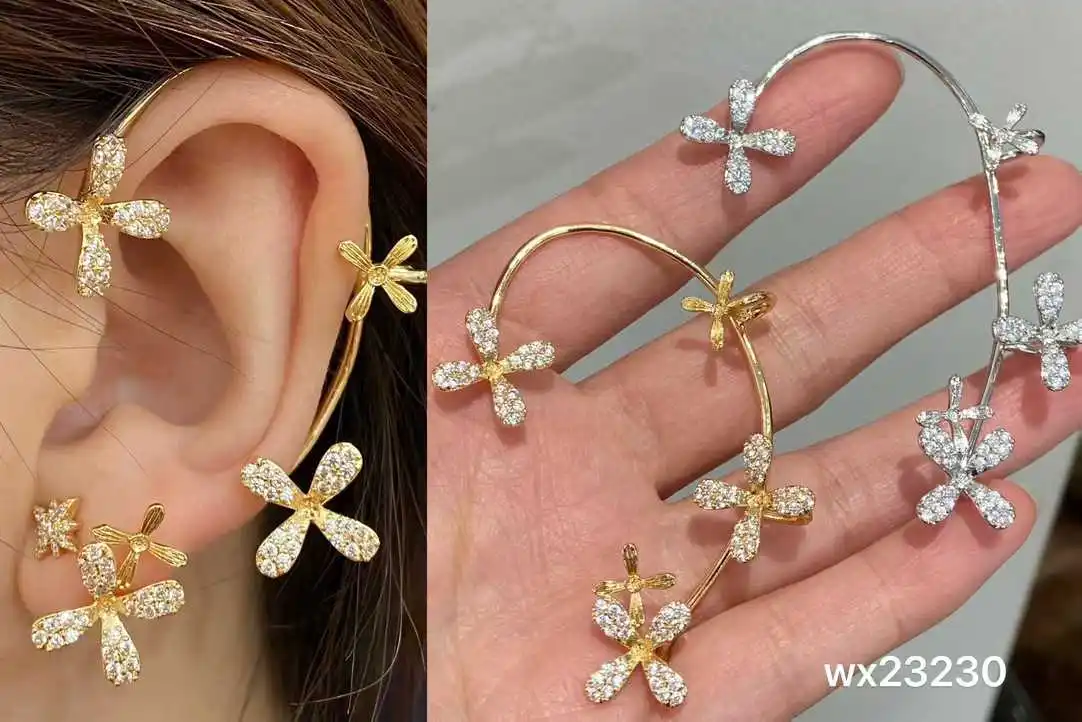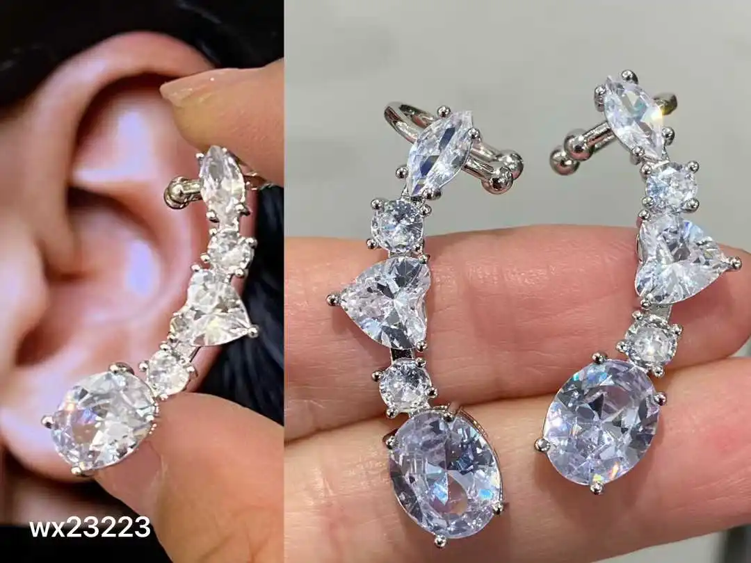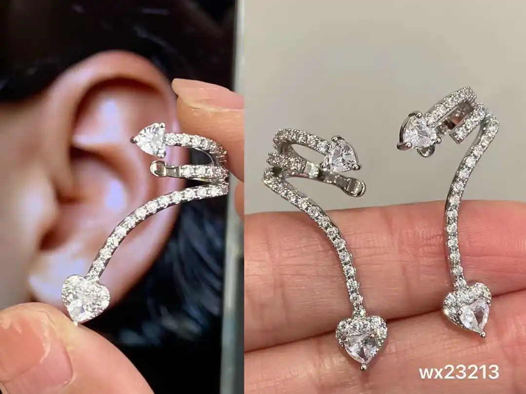 Trendy Women's Shiny AAA Cubic Zirconia Stud Earrings Angle Wing Ear Cuff Climbing Design for Wedding Bridal Jewelry