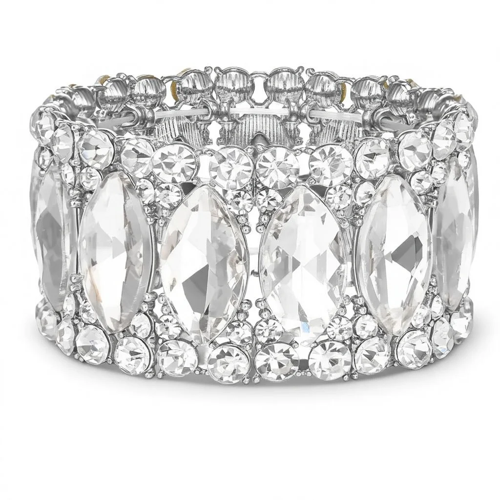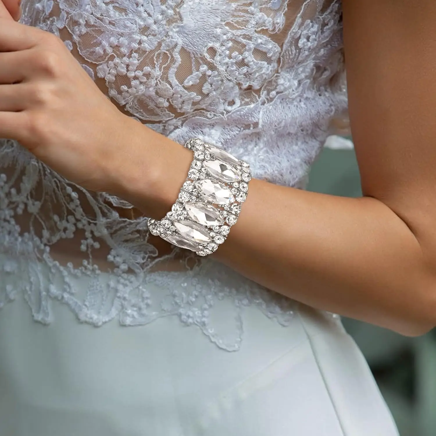 BriLove Wedding Bridal Elegant Crystal Double Row Rhinestone Natural Stone Marquise Cut Cluster Stretch Bangle Bracelet China
