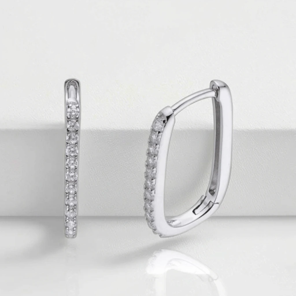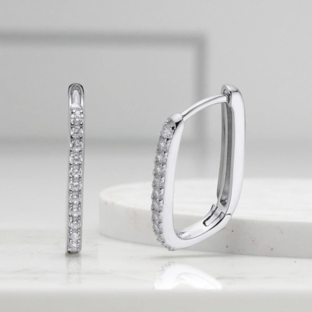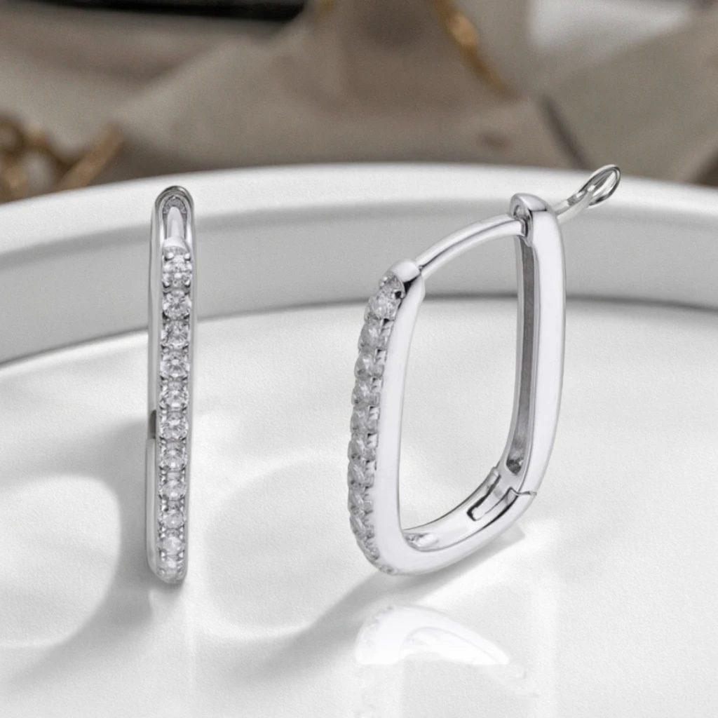 Keiyue Waterproof 925 Sterling Silver U Shaped Square Hoop Earrings Geometric Jewelry Lock Earring Backs