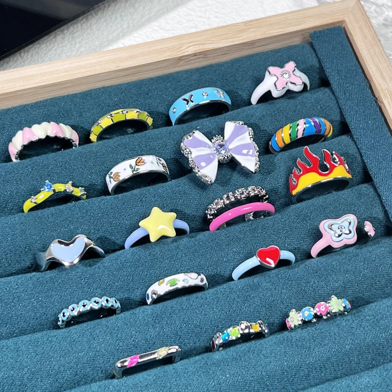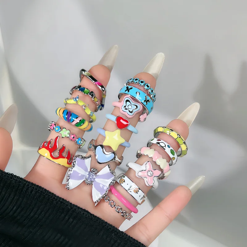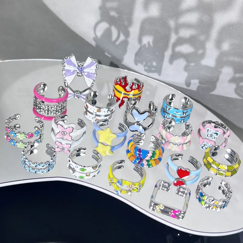 Rainbow Color Drop Glaze Womens Fashion Niche Design Alloy Ring Sweet Cool Enamel All Match Simple Trendy Style for Students