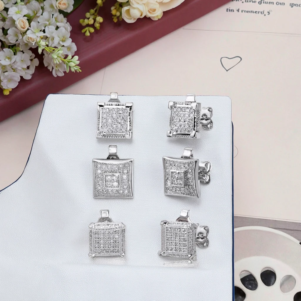 Keiyue Wholesale Factory CZs Stud Earrings Original S925 Geometry Fashion Simple Silver-plated Jewelry for Fashion Parties